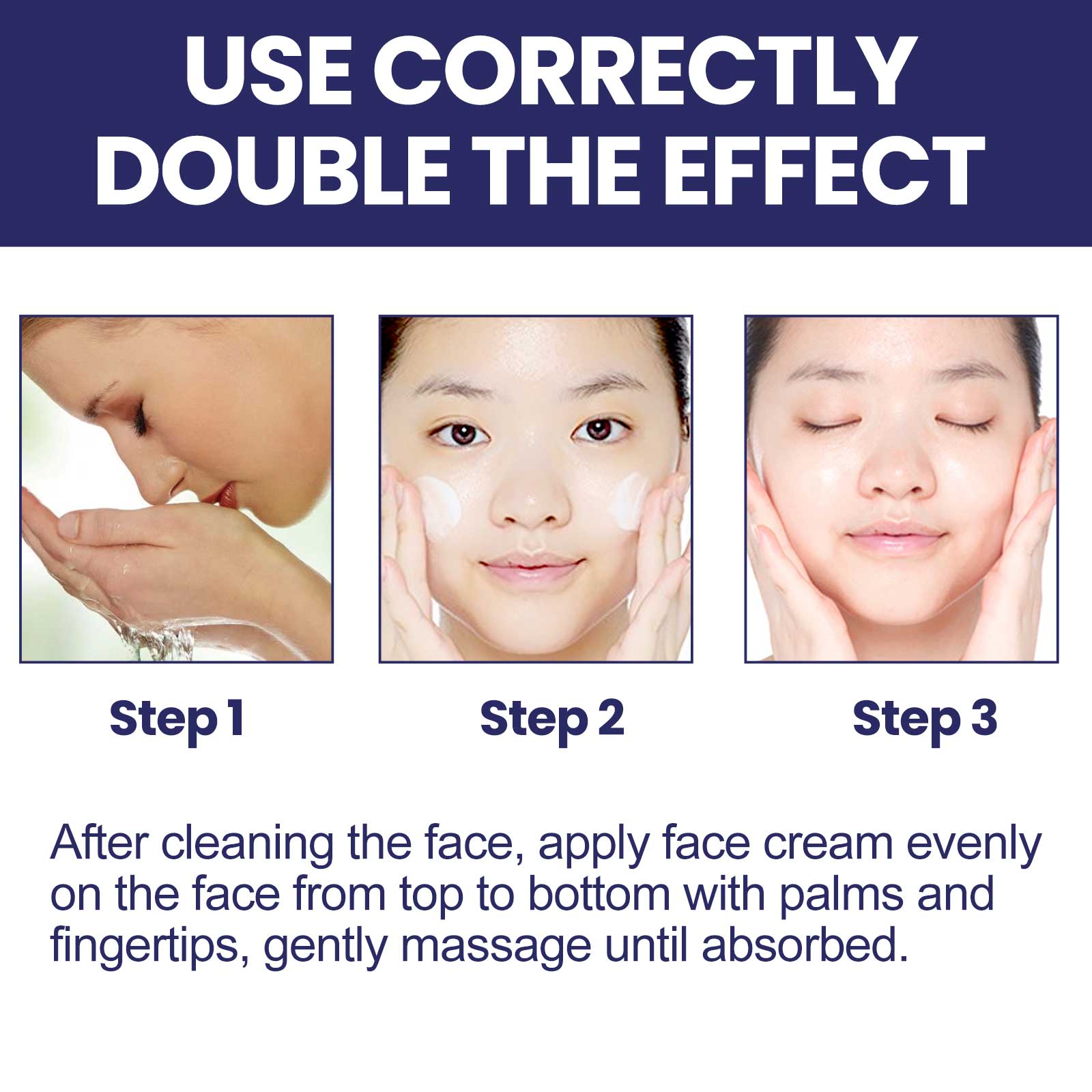 Our moisturizing cream contains purified water, organic aloe vera juice, retinyl palmitate. It can deeply moisturize, reduce wrinkles and fine lines, smooth skin texture, restore vitality and healthy skin condition, this quality is light, non-sticky, easy to absorb. Helps moisturize the face, locks in moisture, reduces damage caused by free radicals, and delays skin aging. Its use method is very simple: first, after cleansing, apply it evenly on the face with the palm and fingertips from top to bottom, gently massage until absorbed, after use, it can effectively repair the dull and uneven skin tone, shrink pores, fade spots and blemishes, brighten and whiten the skin, and make the skin more shiny.