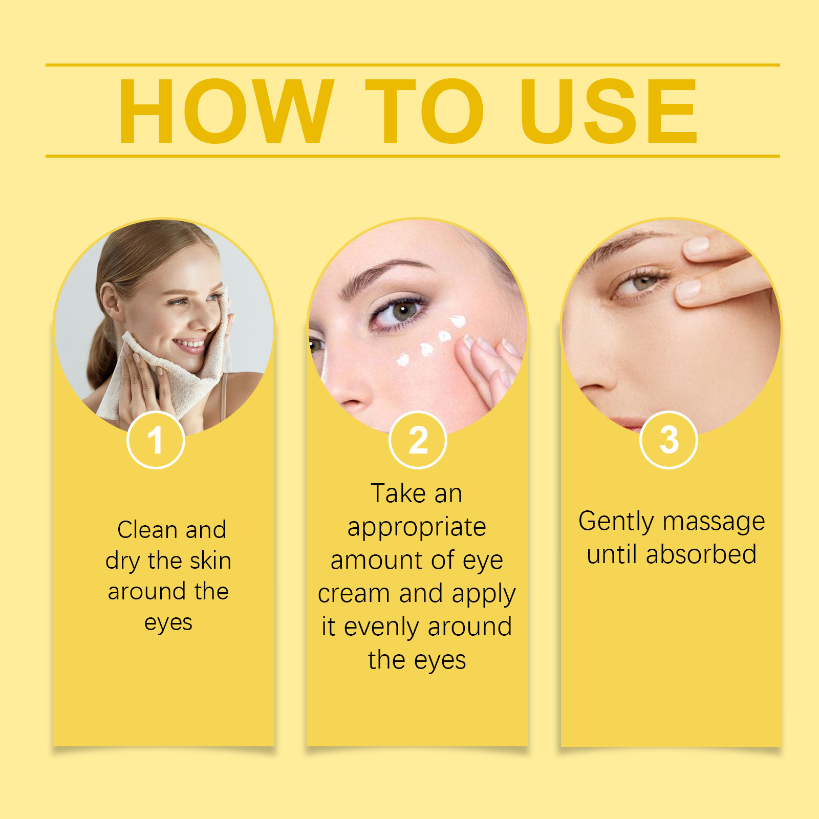 Our moisturizing eye cream contains vitamin E and honeysuckle extract. It can provide comprehensive eye care and improve sagging and dullness around the eyes. Its application method is very simple: clean and dry the skin around the eyes, apply an appropriate amount of eye cream evenly around the eyes, gently massage until absorbed. And can effectively promote microcirculation around the eye, help reduce eye puffiness and bags.