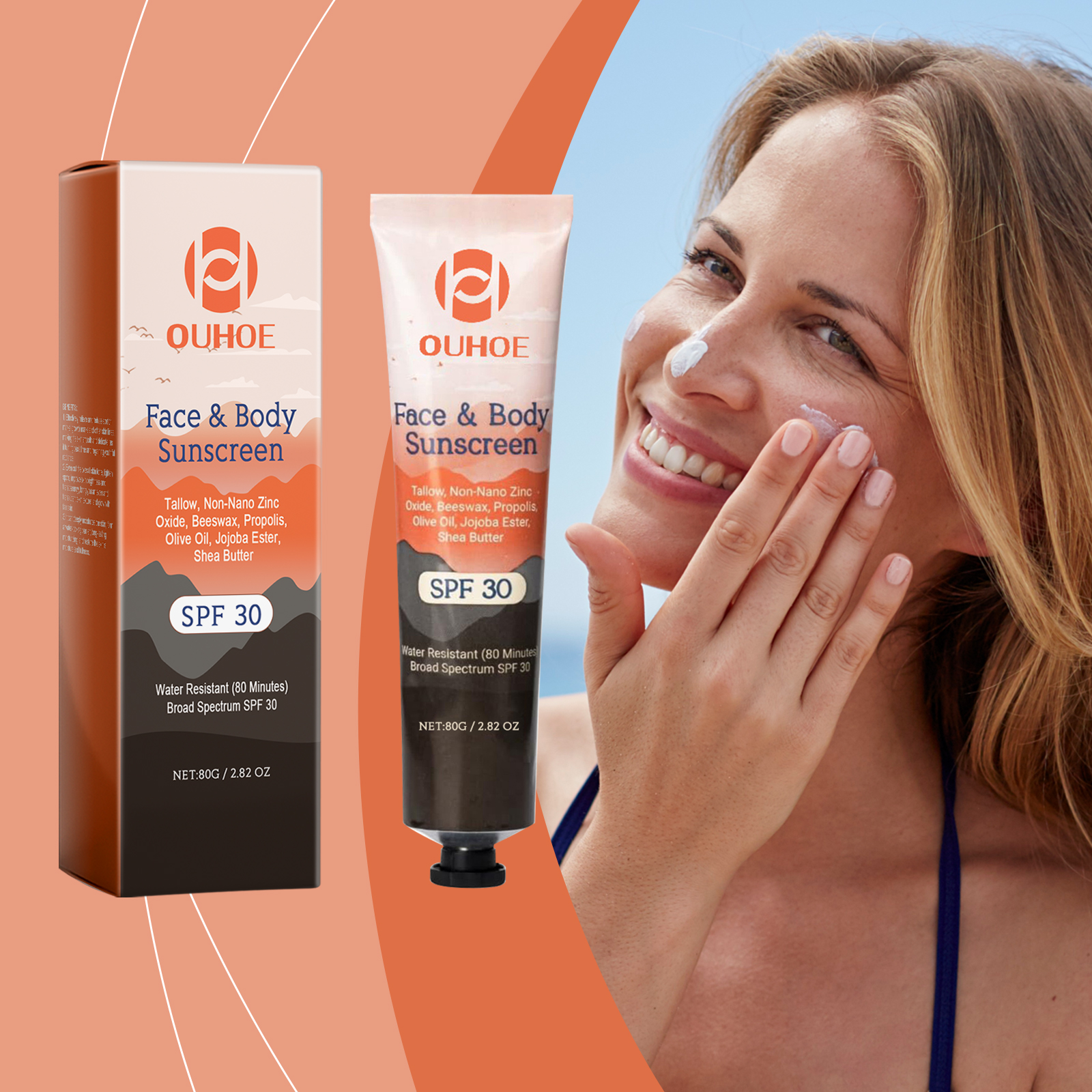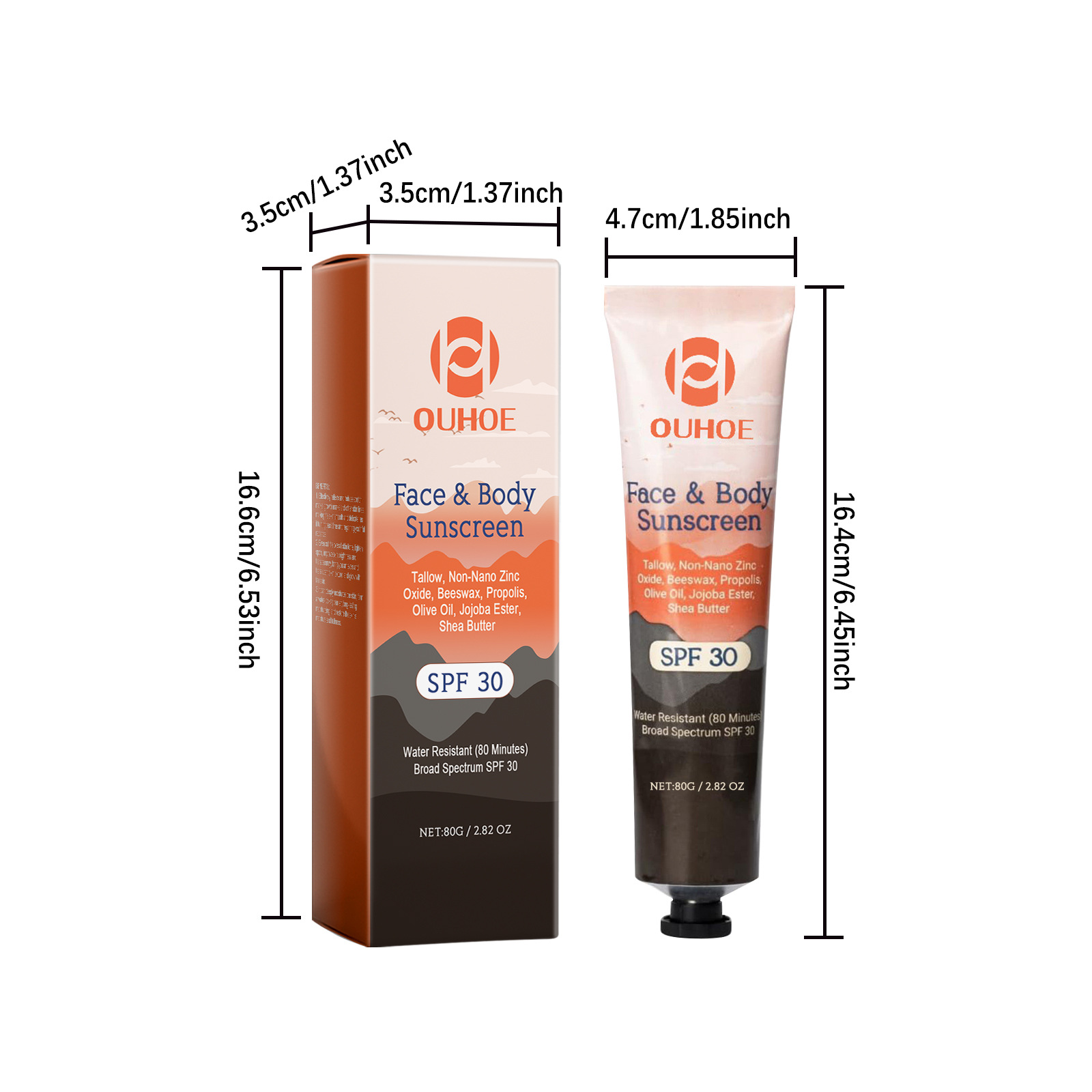 Our versatile protective moisturizer contains tallow, zinc oxide and beeswax. It can penetrate deep into the skin and lock in moisture. Provide the fatty acids needed by the skin; A protective layer can be formed to protect against UV damage. Deeply nourish skin, enhance skin elasticity, make skin smooth and delicate. Its use is simple: 1. Clean and dry the skin; 2. Apply appropriate amount of the product evenly on the skin; 3. Wait until the sunscreen has formed before going outside. Soothe the skin and speed up the repair process. Ballast oil and olive oil, continuously moisturizing, farewell to dry.