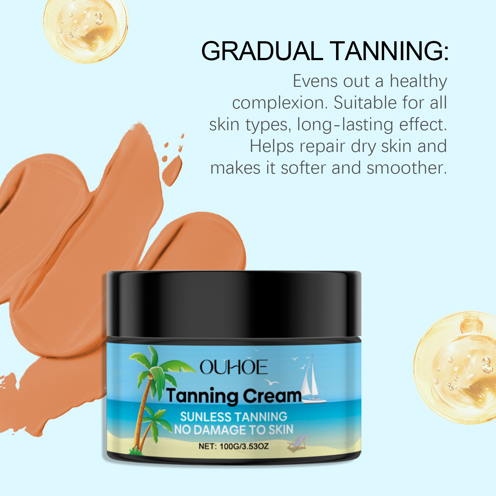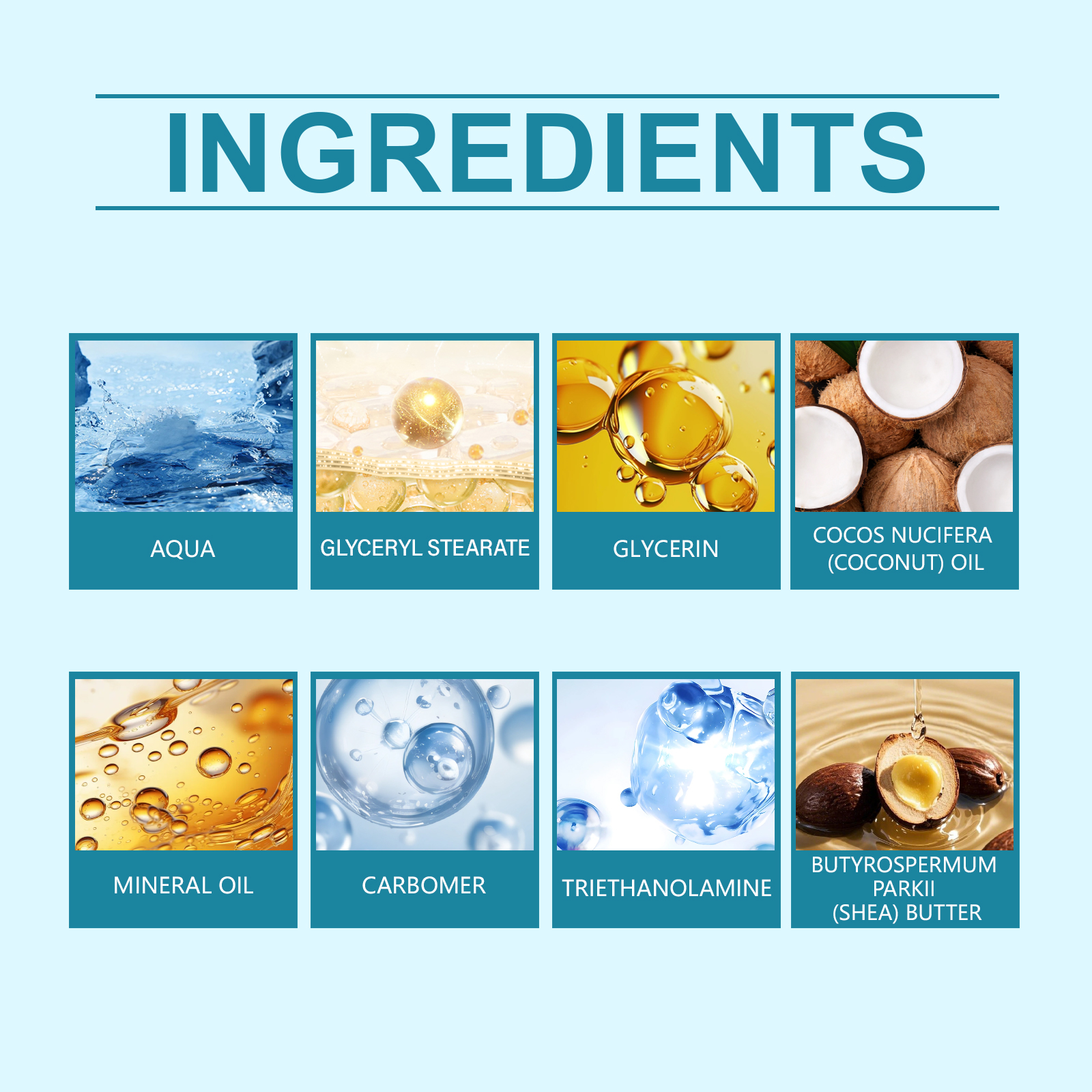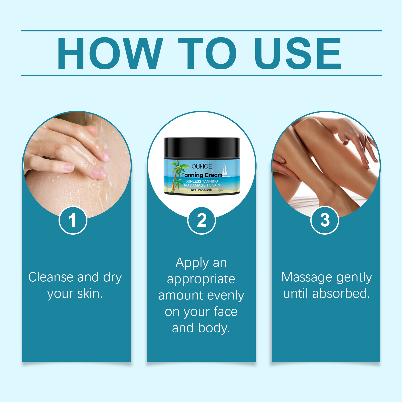 Our skin nourishing cream contains triethanolamine, coconut oil, shea butter. It can moisturize dry skin, restore skin moisture, soft and even, and leave no trace of tanning effect. The way to use it is simple: clean and dry your skin. Apply evenly to face and body and gently massage until absorbed. It also helps to retain moisture throughout the day, gradually elevating skin tone and creating a radiant feeling.