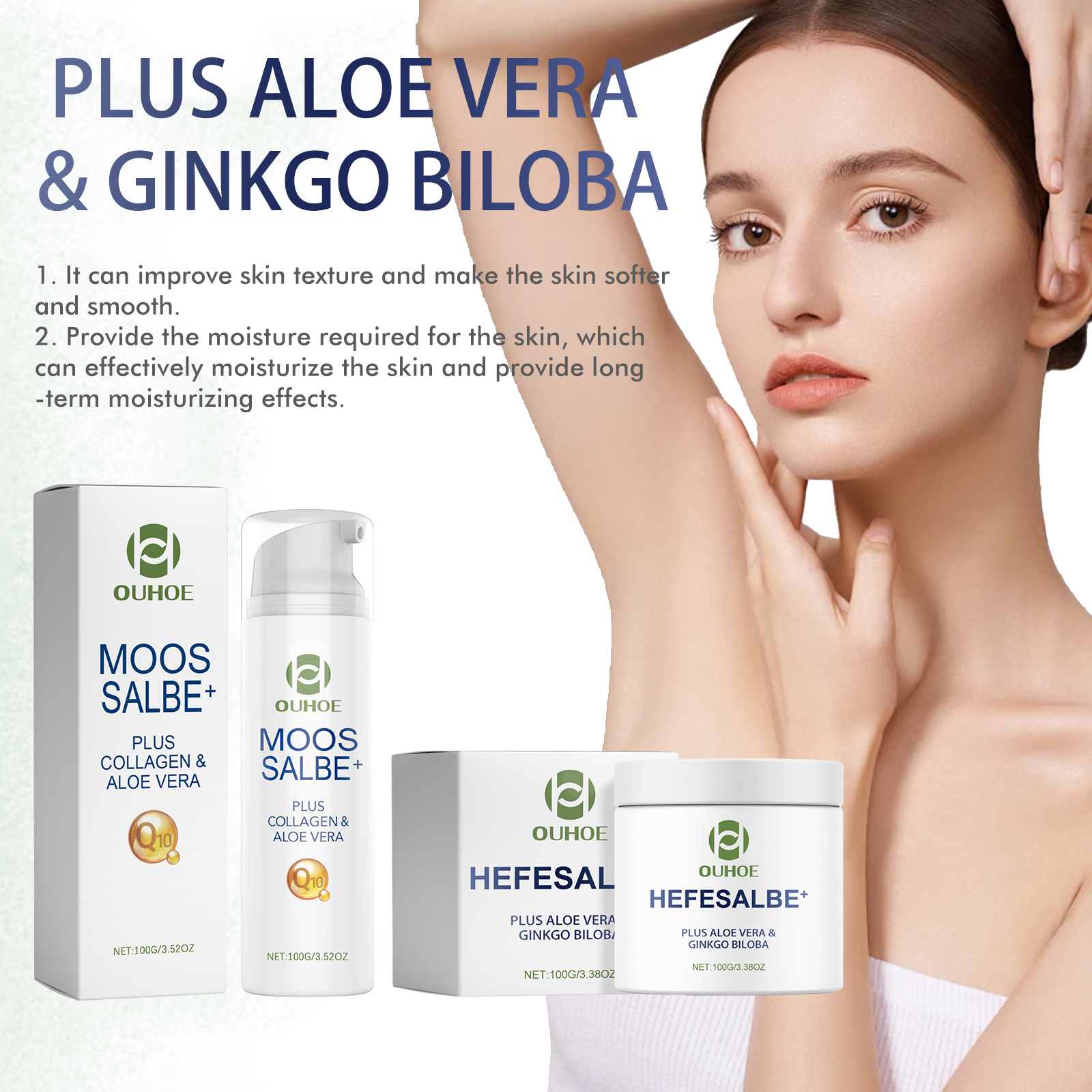 Our Plus Aloe Vera & Ginkgo Biloba contains Peat Moss Extract, Sodium Hyaluronate, Aloe Barbadensis Leaf Extract. It can improve the skin and make the skin soft and smooth. Provide the moisture needed by the skin, effectively moisturize the skin, and provide long-term moisturizing effect. Its use method is very simple: clean the face, take a proper amount of cream evenly pressed on the face skin, and gently massage until completely absorbed. Make the skin smooth and delicate, lighten the dull, rejuvenate the skin.