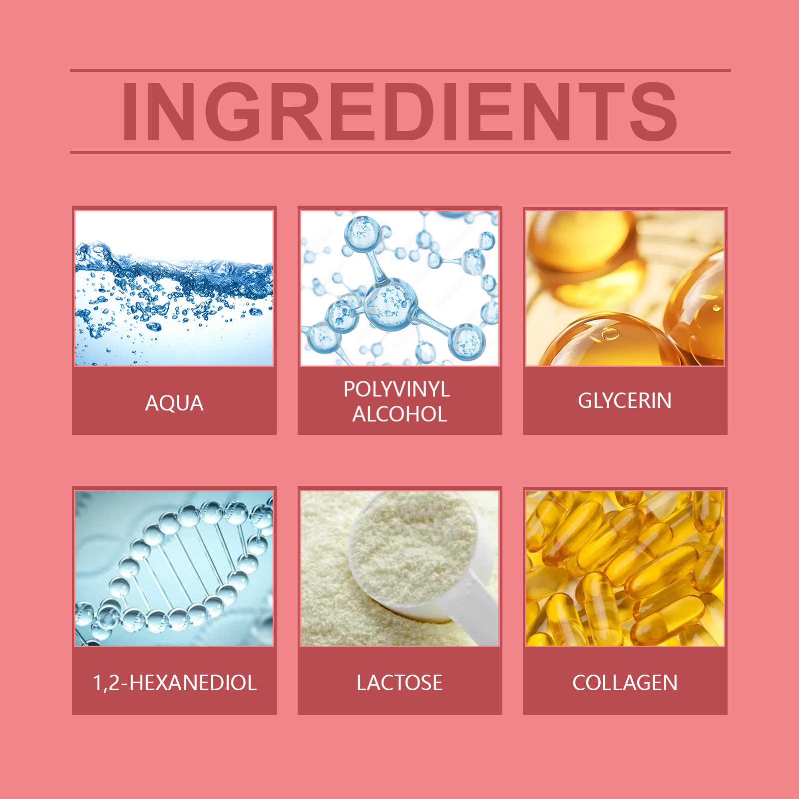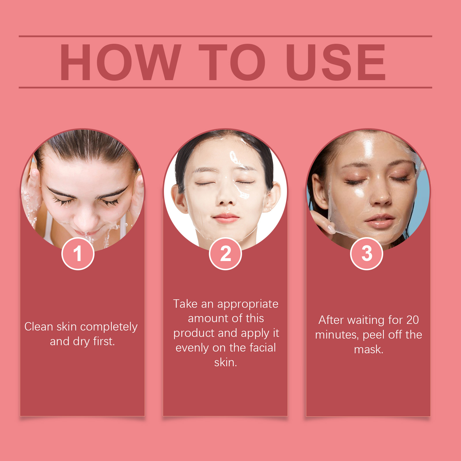 Our red lactose Collagen Tearing mask contains polyvinyl alcohol and glycerin. It can effectively lock in moisture and increase the viscosity and stability of the mask. Enhance skin elasticity and reduce fine lines and wrinkles. Deeply moisturize skin and adjust skin oil balance. The way to use it is very simple: 1. Thoroughly clean the skin and dry it first. 2. Apply appropriate amount of the product evenly on the face. 3. After 20 minutes, remove the mask. Effective anti-wrinkle. Reduce wrinkles and fine lines on your skin and make your skin smoother. It has the effect of shrinking pores, enhancing skin elasticity and shrinking large pores.