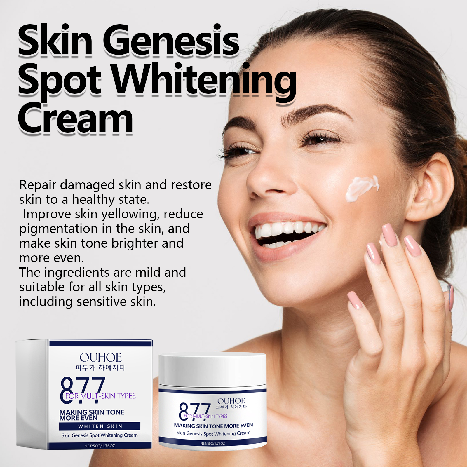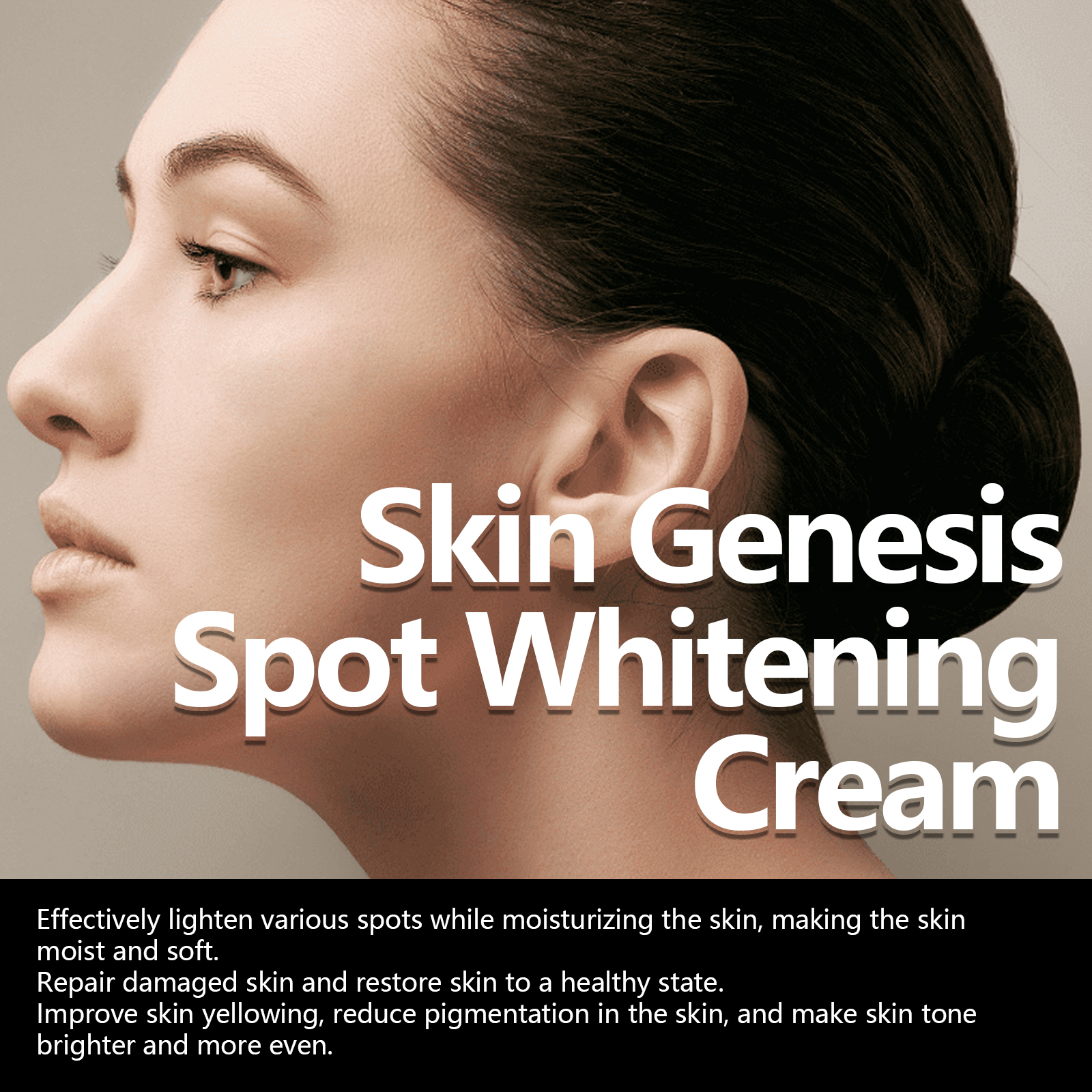 Our Skin Genesis Spot Whitening Cream contains Glycerin, Gold, Hydrolyzed Collagen. It can effectively dilute all kinds of color spots and moisturize the skin, make the skin moist and soft, repair the damaged skin, restore the skin to a healthy state, improve skin yellowing, reduce pigmentation in the skin, make the skin color more bright and even. Its application method is very simple: clean the face, evenly apply the cream to the face skin, gently massage until completely absorbed. It can repair damaged skin and restore the skin to a healthy state. The ingredients are gentle and suitable for all skin types, including sensitive skin.