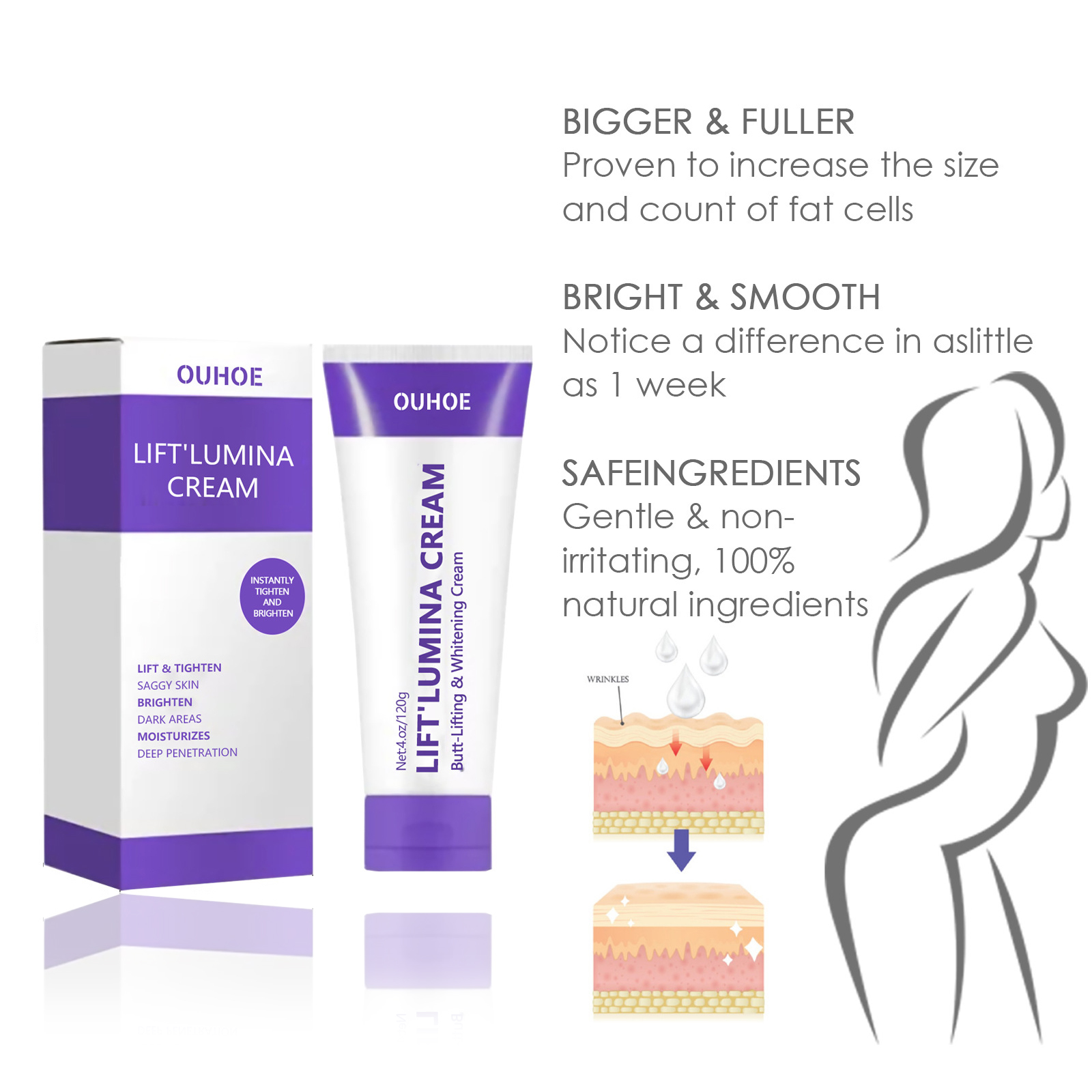Our hip care cream contains coffee extract, ginger root extract and jojoba seed oil. It can relieve the soreness in the buttocks caused by prolonged sitting, while firming the skin and creating confidence and beauty. Outline the contour of the buttocks, reduce fat in the buttocks area, and enhance skin elasticity and firmness. Its usage method is very simple: First, clean the skin on the buttocks and dry it. Then, take an appropriate amount of face cream and apply it evenly to the buttocks. Gently massage until it is fully absorbed (it is recommended to use it once in the morning and once in the evening for better results). After use, it helps stimulate the metabolism of the skin, promote the development of buttock muscles, making the buttocks tighter and fuller, enhancing charm and making the figure more perfect.