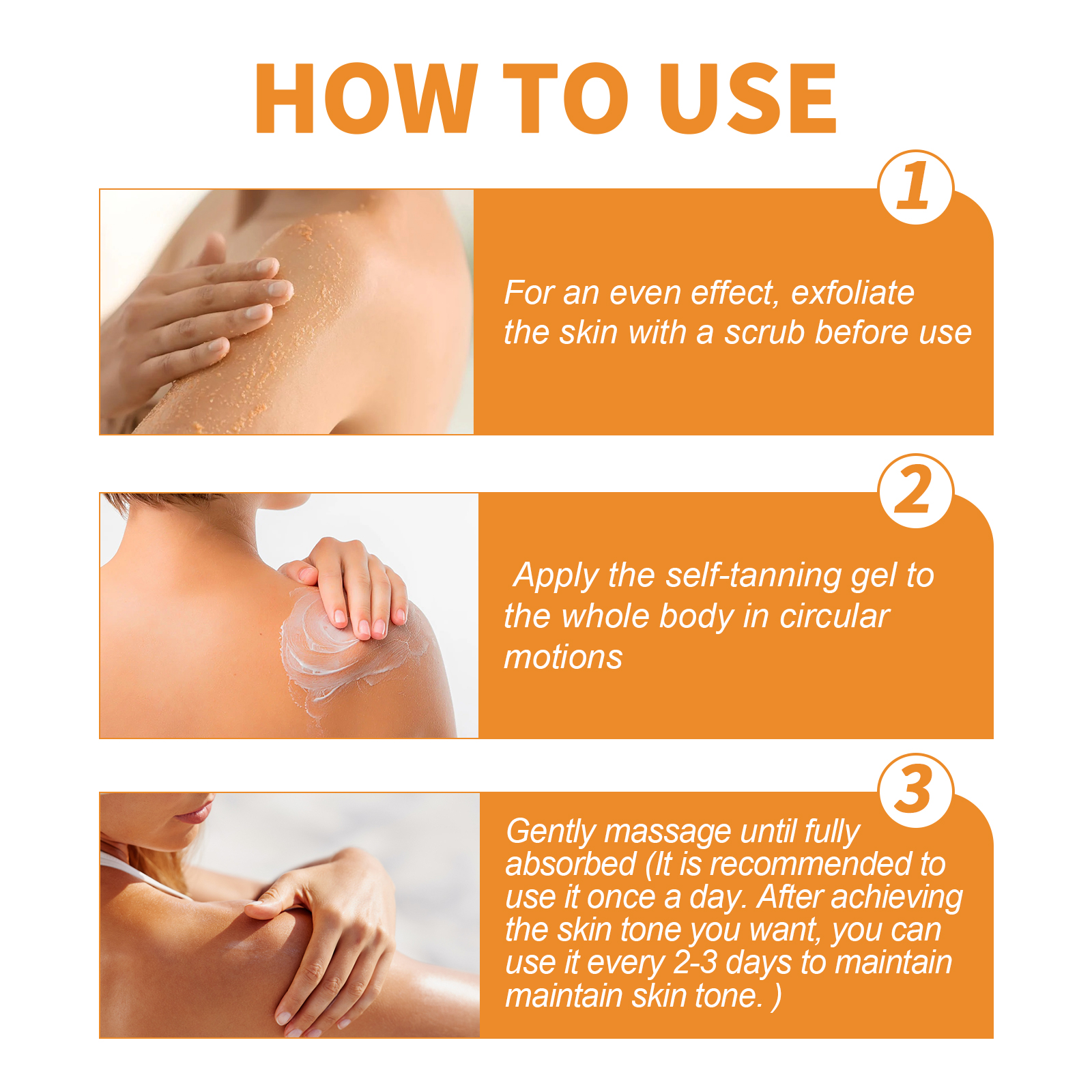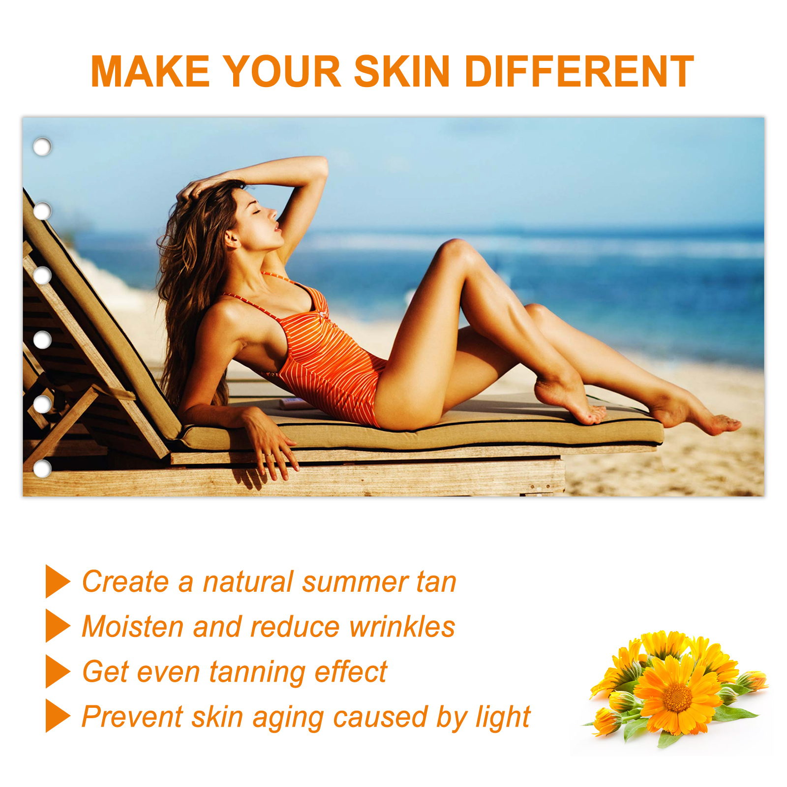 Our Black Repair gel contains tocopherol, calendula extract and carrot oil. It can help the skin to get a soft, natural tan while creating a firmer body contour and repairing scarred damaged skin. Create a natural summer tan, moisturize and reduce wrinkles, get an even tanning effect and prevent light-induced skin aging. Its application method is simple: in order to achieve an even effect, exfoliate with a scrub before use; Apply self-tanning gel all over your body in a circular motion; Massage gently until fully absorbed (recommended once daily). After achieving your desired skin tone, you can use it every 2-3 days to maintain the skin tone). A 2-in-1 body treatment that deeply moisturizes all skin types, enhances skin shine and makes skin look healthier.