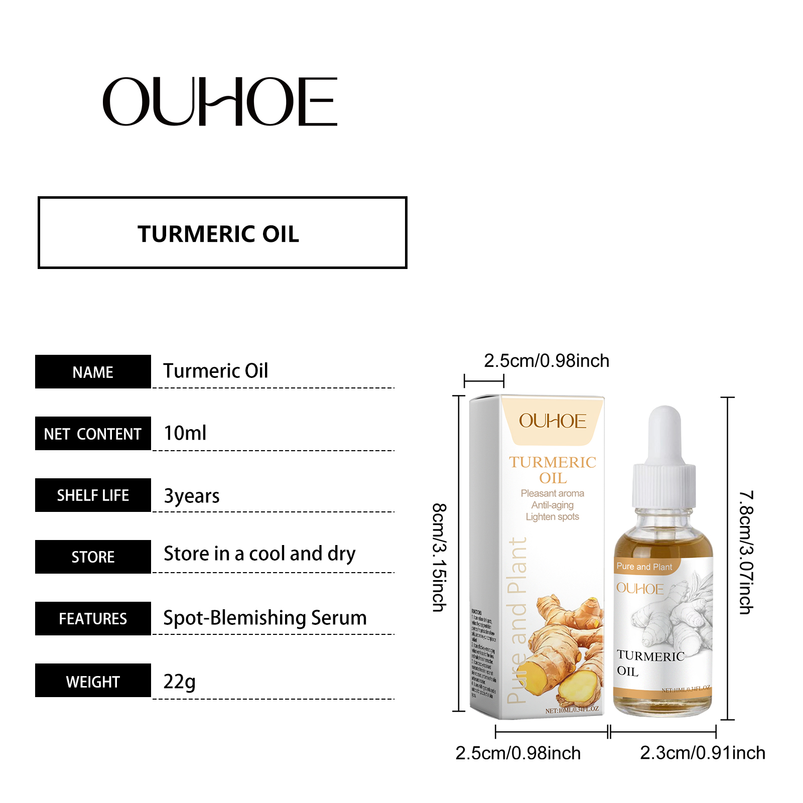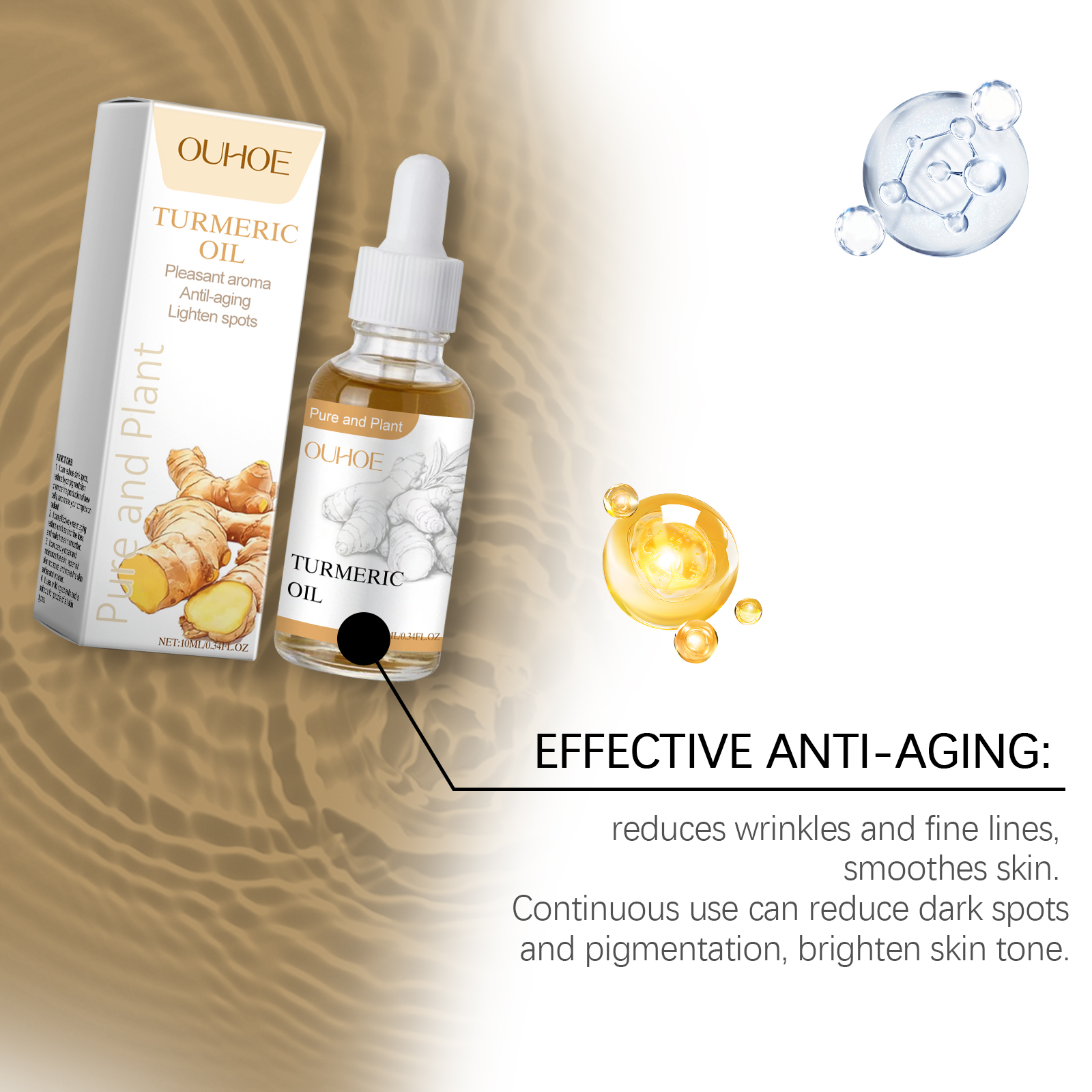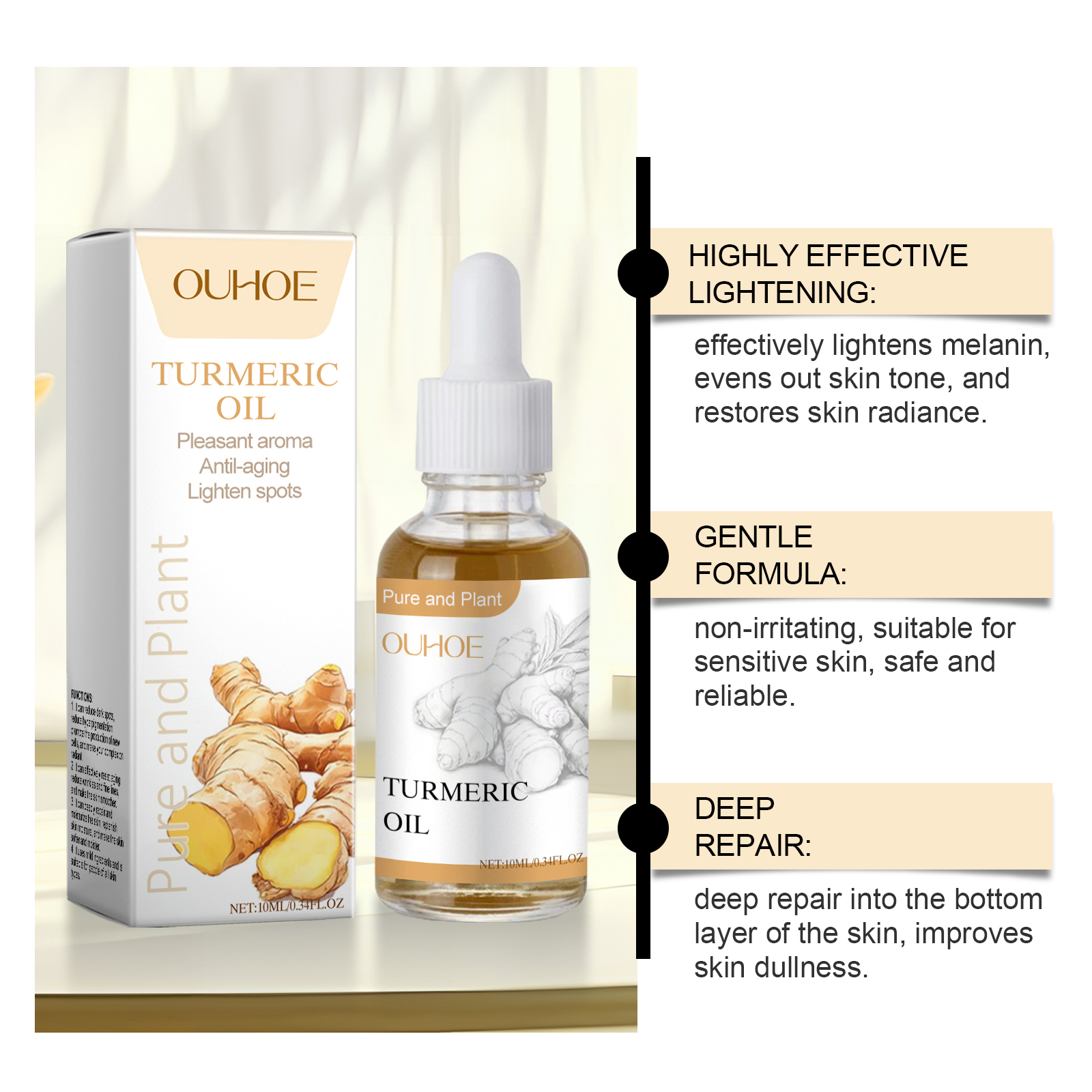 Our turmeric oil contains collagen and glycerin. It can improve the texture of the skin and make the skin more delicate and smooth. Its application is simple: clean your skin thoroughly and keep it dry. Apply appropriate amount of this product evenly on the face. Massage gently to promote absorption. And can effectively dilute melanin, even skin tone, restore skin luster.