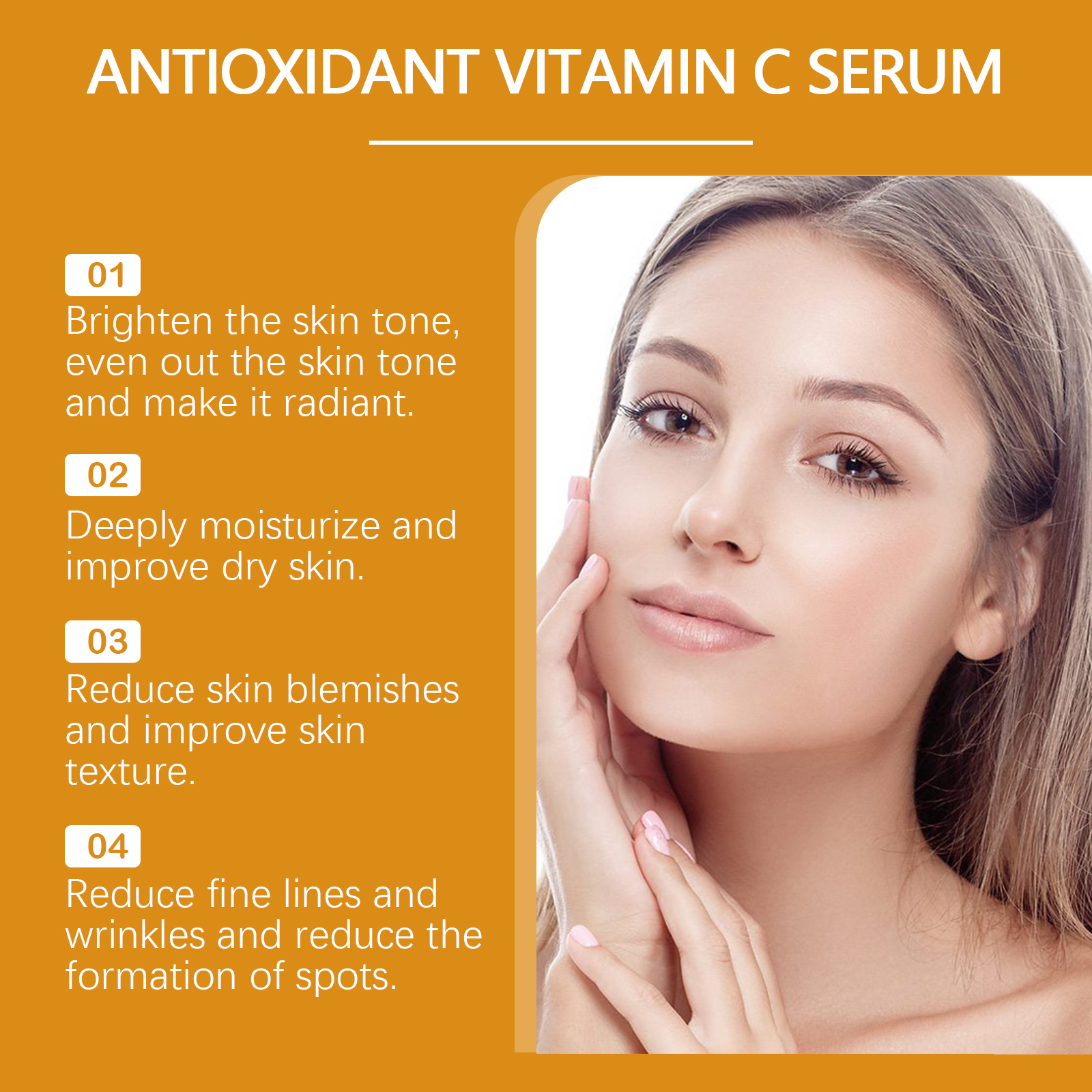 Our Vitamin C serum contains quercetin and peppermint extract. It can reduce wrinkles and spots, improve skin elasticity and firmness to show youthful vitality. Its application method is very simple: clean facial skin, keep skin dry, apply appropriate amount of this product evenly on facial skin, gently massage until absorbed. And can provide a comprehensive skin care solution to improve the overall skin health.