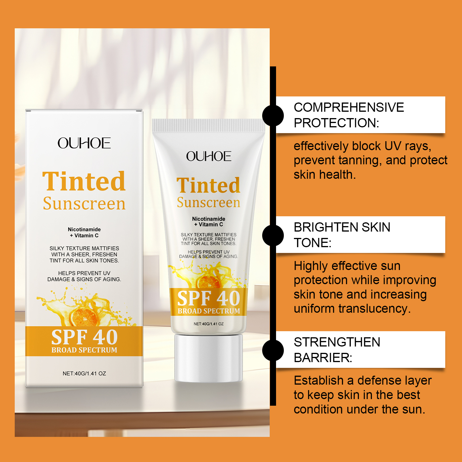 Our Vitamin C protective cream contains lemon extract, vitamin E (tocopherol). It can reduce skin aging problems and is a good choice for keeping skin in good condition during outdoor activities. Its use is simple: clean your face and keep it dry. Apply appropriate amount to face evenly. Gently massage until absorbed. And can be mild and non-irritating, daily use comfortable without burden.