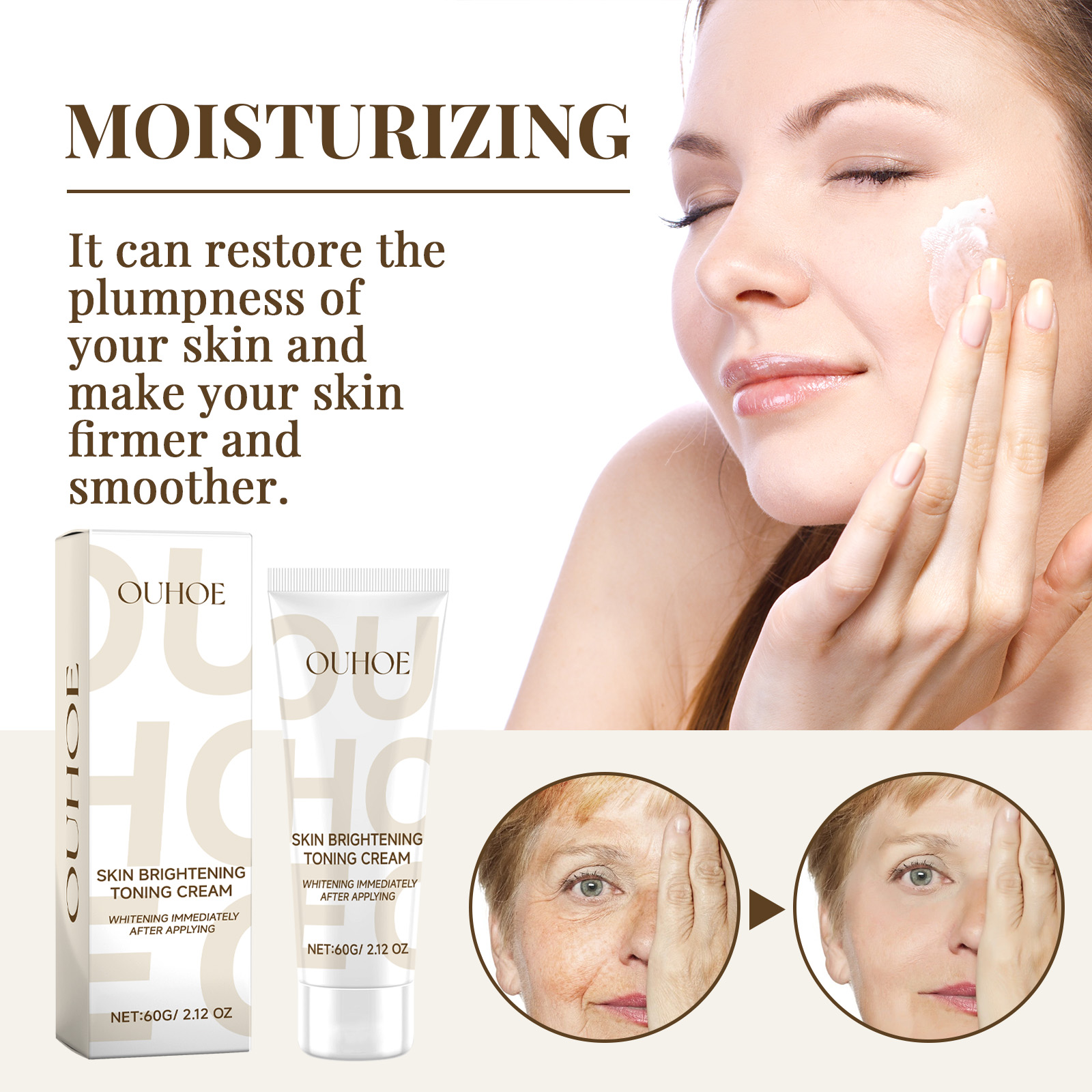 Our Instantly Anti-Wrinkle Cream contains Glycerin, Glycyrrhiza Glabra (Licorice) Root Extract, Pearl Powder. It restores the fullness of the skin, makes the skin firmer and smoother, helps brighten the complexion and makes your skin more radiant. Its use method is very simple: clean the skin, take an appropriate amount of this product evenly spread on the skin, gently pat with your fingertips, so that the product is evenly distributed. It can lighten the complexion and make the skin smooth, firm and shiny.