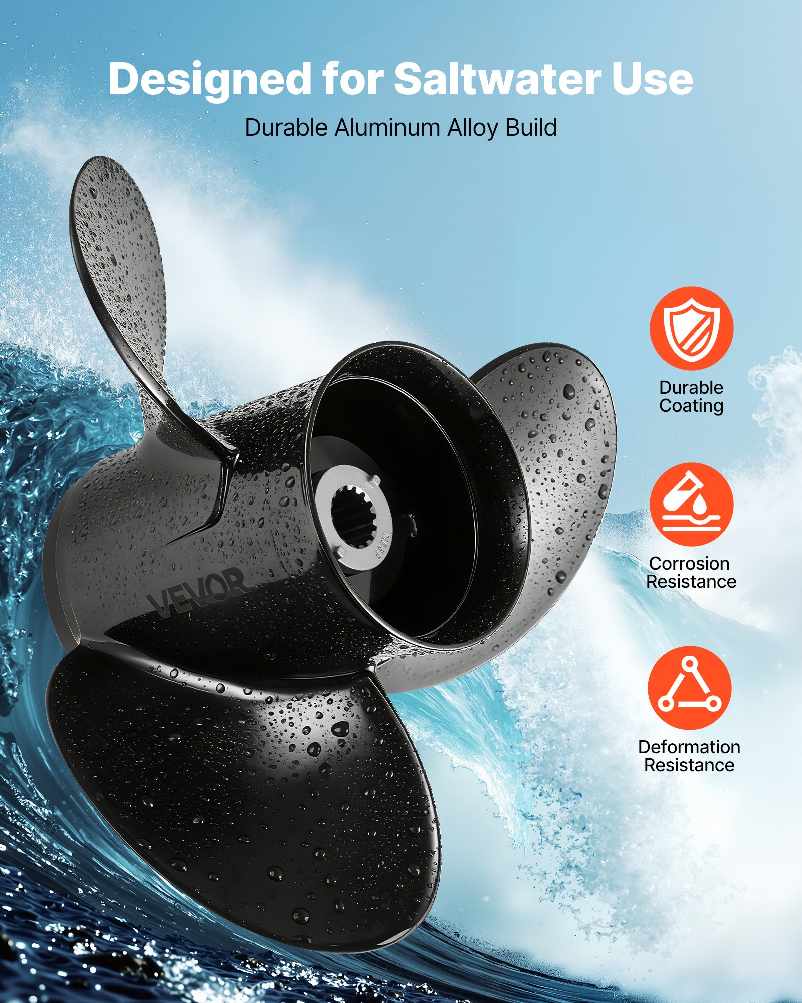 Sturdy & Durable: Made from corrosion-resistant aluminum alloy, this boat propeller is suitable for extended use in both freshwater and saltwater conditions. It also remains lightweight to improve rotational efficiency