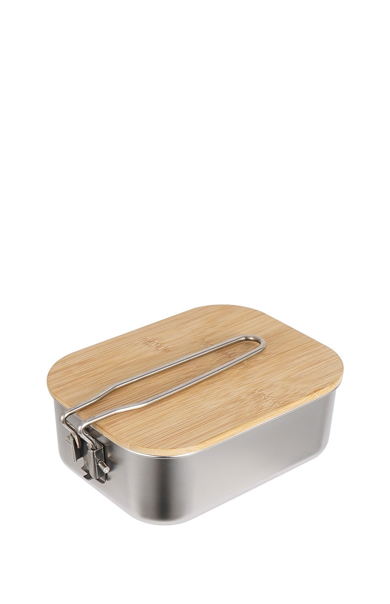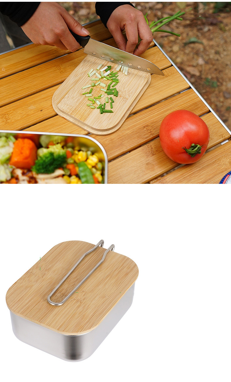 Color: 304 stainless steel lunch box with bamboo and wood cutting board cover