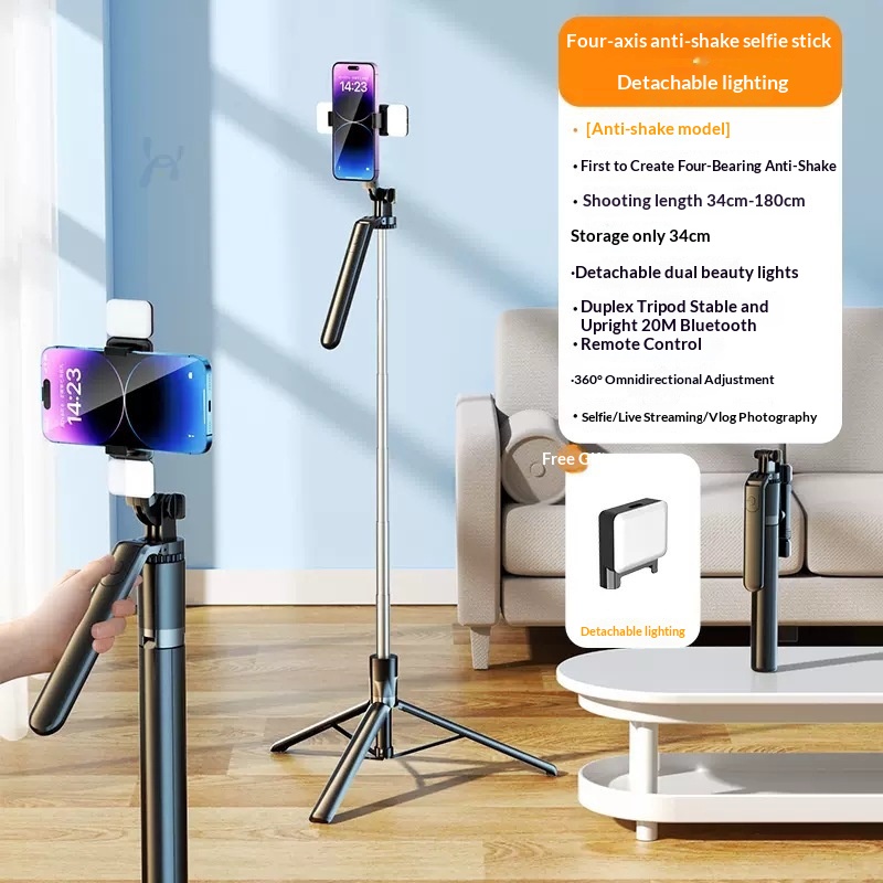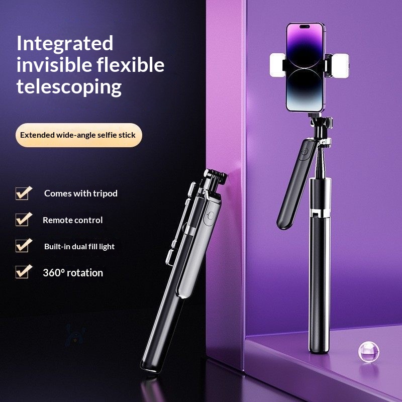 Color: Black [Extended 1.7m + Handle with Stabilization + Integrated Tripod], Black + Single Fill Light [Extended 1.7m + Handle with Stabilization + Integrated Tripod], Black + Dual Fill Lights [Extended 1.7m + Handle with Stabilization + Integrated Tripod]