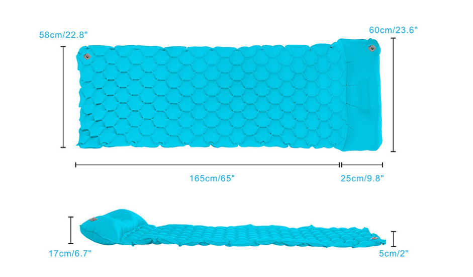 Come with an inflatable pillow, both the pad and the pillow attach an improved ergonomic design, the comfortable padded design adapts to the shape of your body providing you an optimal sleeping experience.