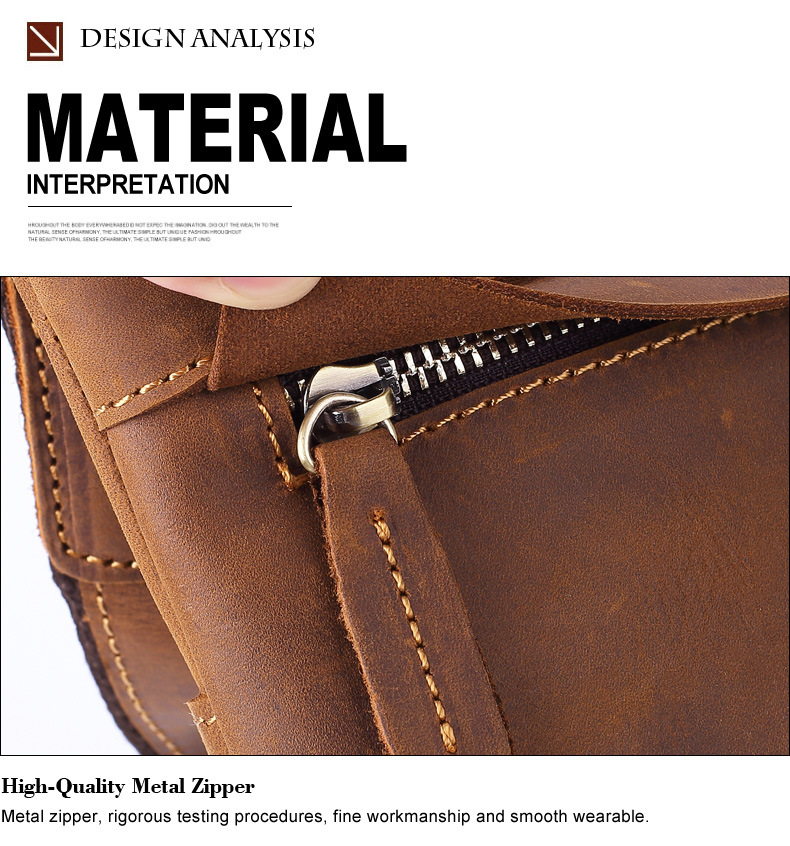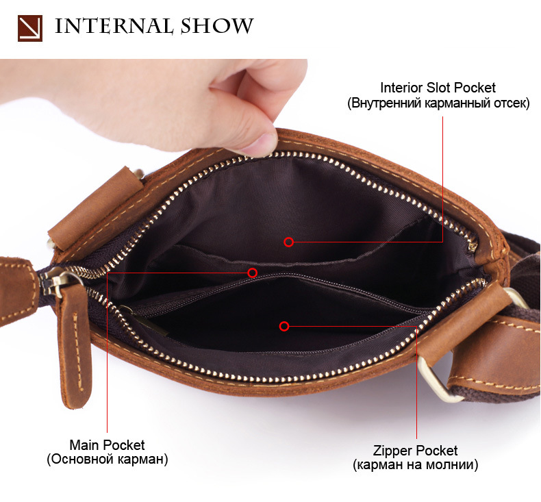 Internal structure: double-layer main pocket, mobile phone pocket, ID pocket, zipper pocket
