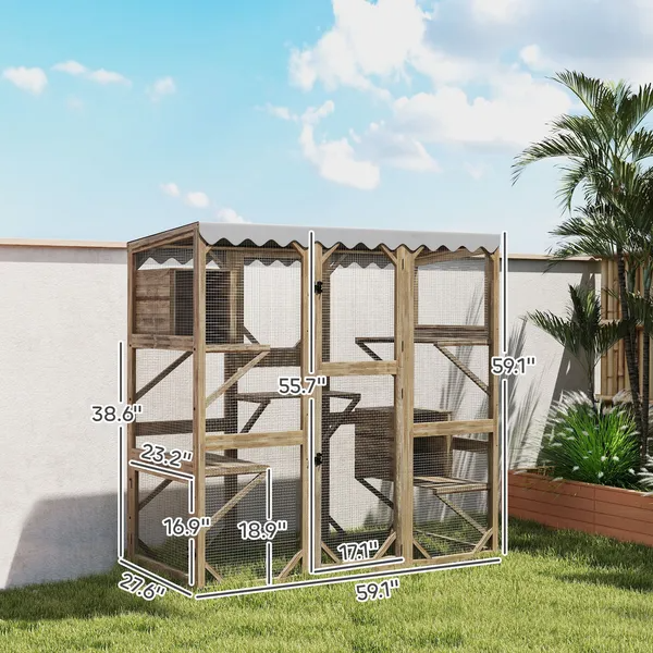 • - Roomy and Comfortable: Designed for 2-3 cats, this outdoor cat enclosure turns any outdoor space into an exciting feline retreat. It also gives you a great space to set up feeding stations or a litter box area to keep your home tidy and organized