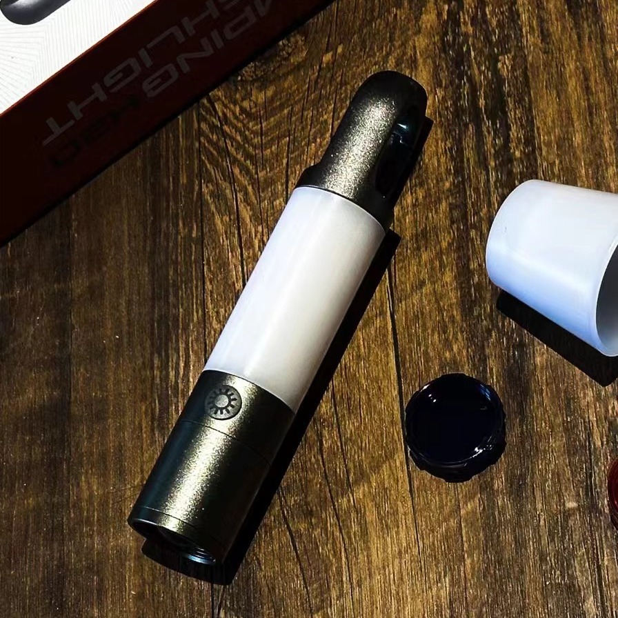 Snap-on spring hook design, top strong magnetic can be attached to iron metal surface, color lampshade thread design can be connected with flashlight main lamp.