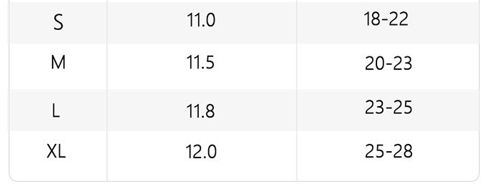 S: 8.0cm, M: 8.2cm, L: 8.5cm, XL: 8.8cm, error range: +/- 0.3cm