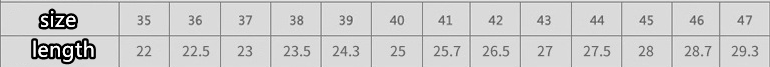 Size: size 35, size 36, size 37, size 38, size 39, size 40, size 41, size 42, size 43, size 44, size 45, size 46