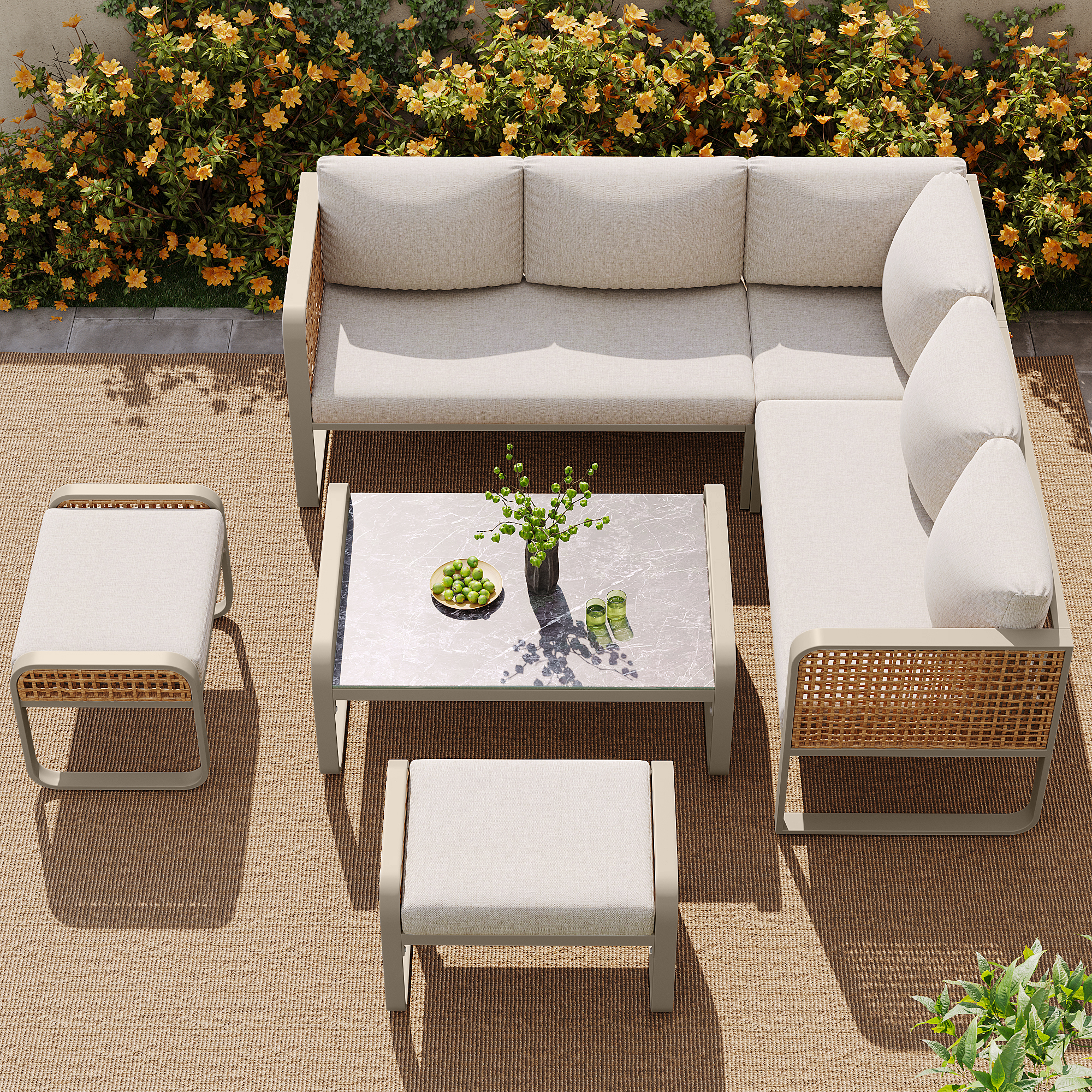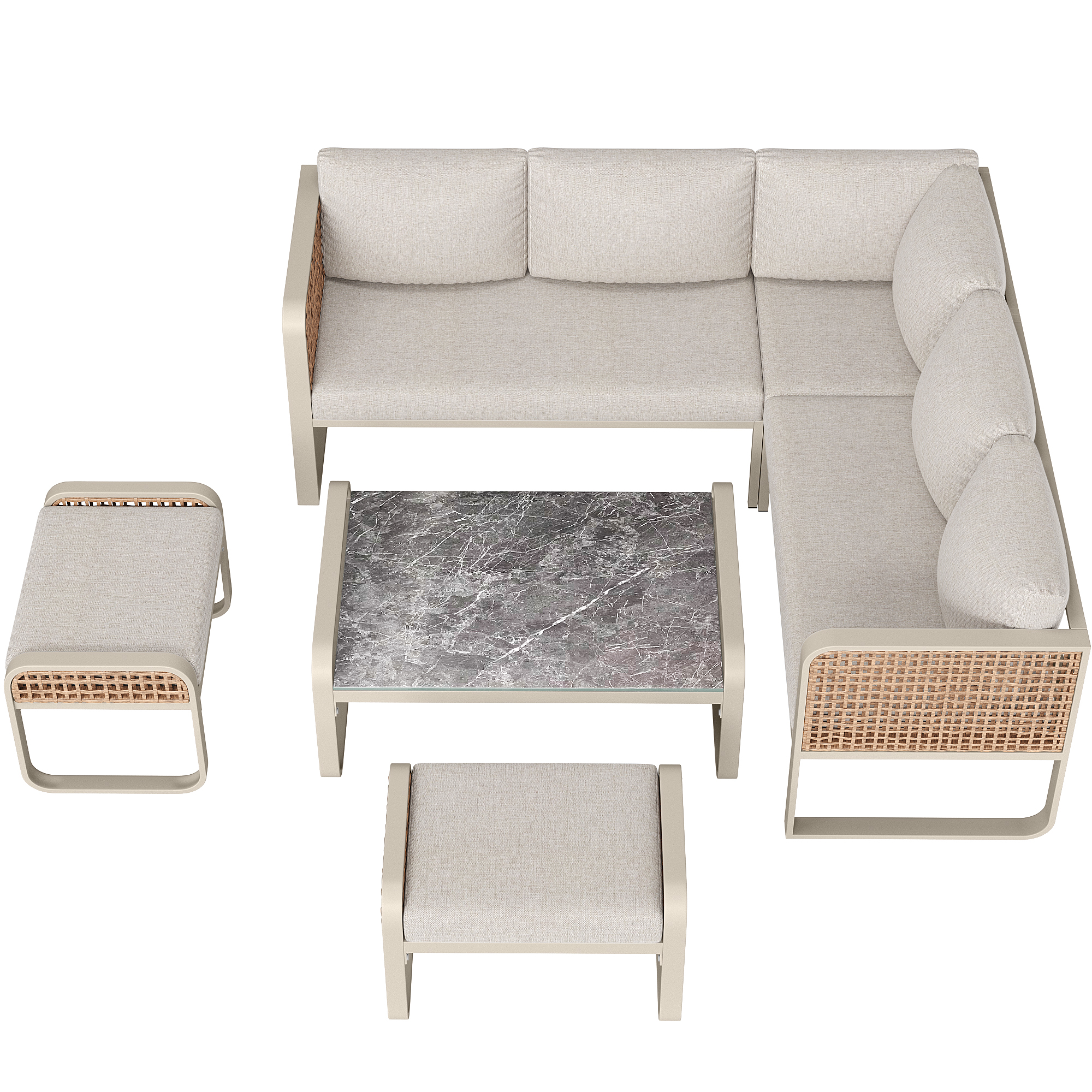 Product Name:Outdoor garden lounge set, rattan furniture set for 6-7 people, corner sofa with galvanised iron frame, adjustable legs, includes all seat and back cushions, beige
