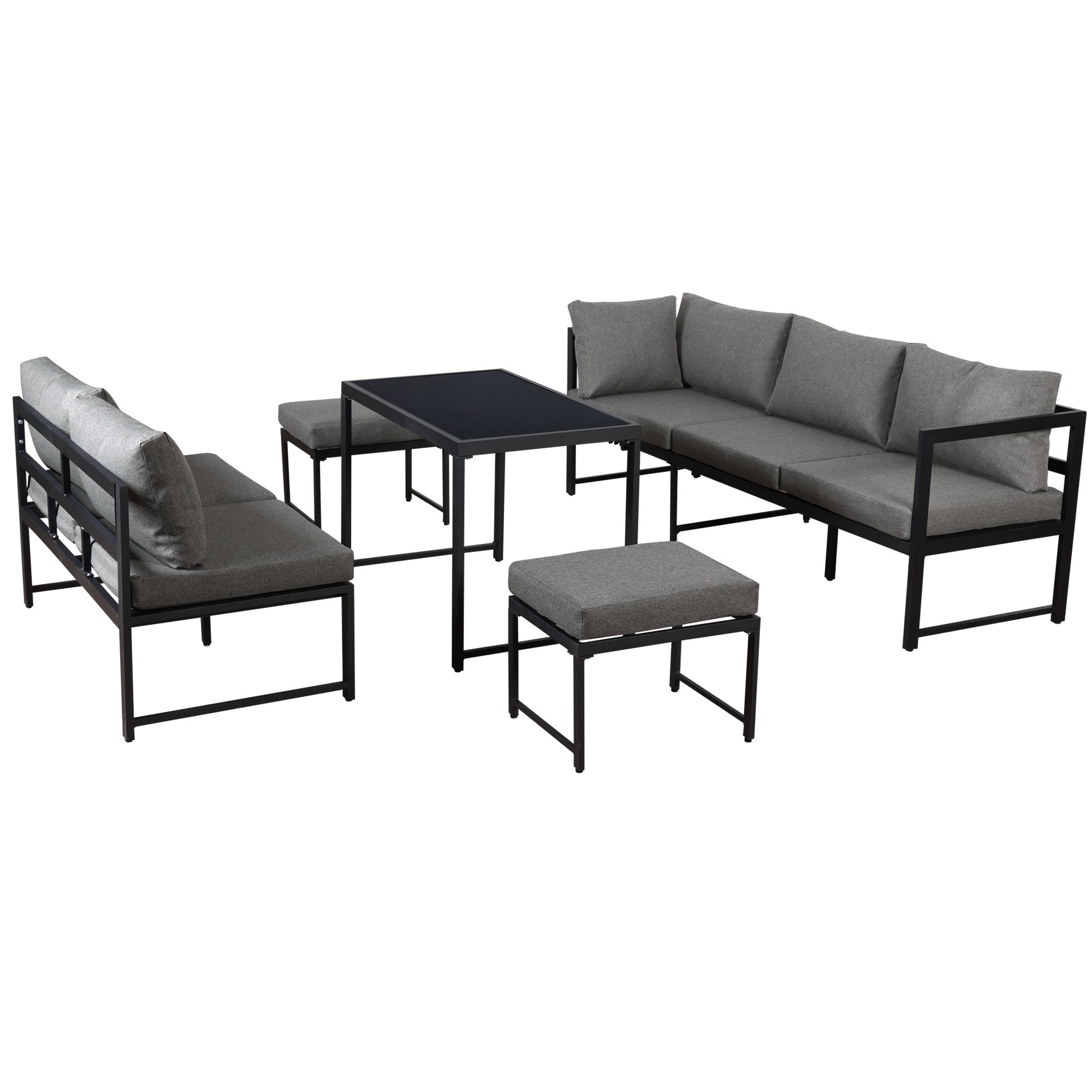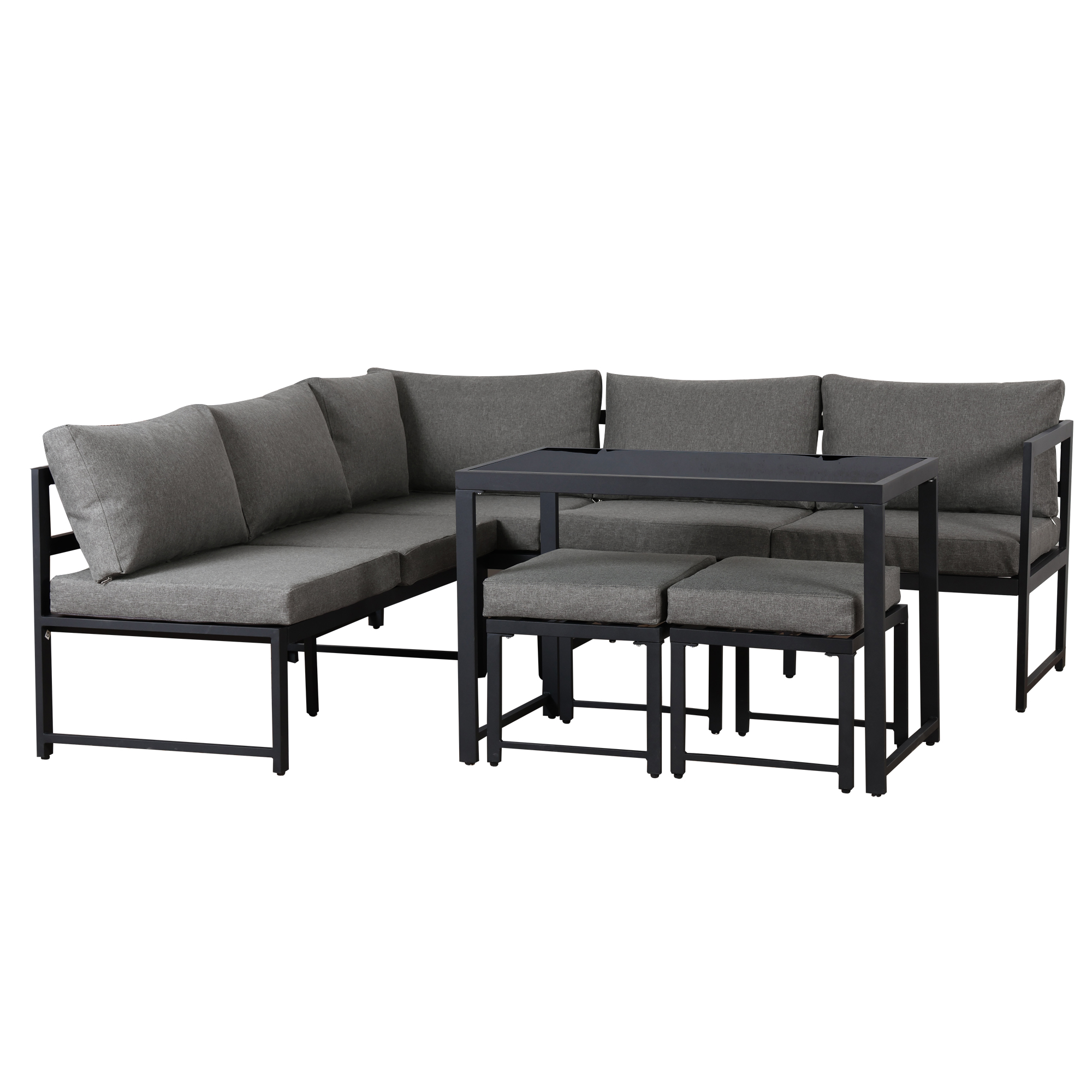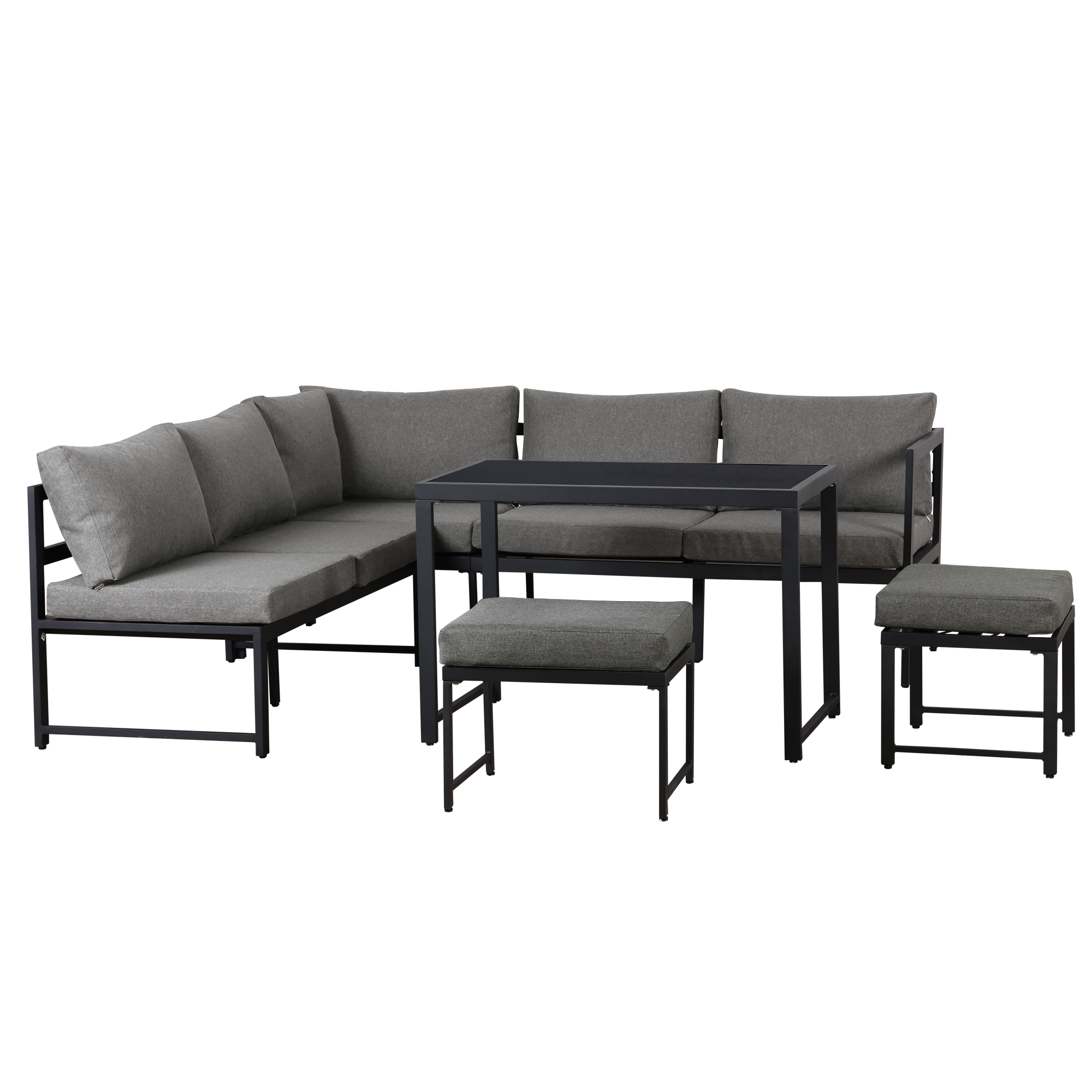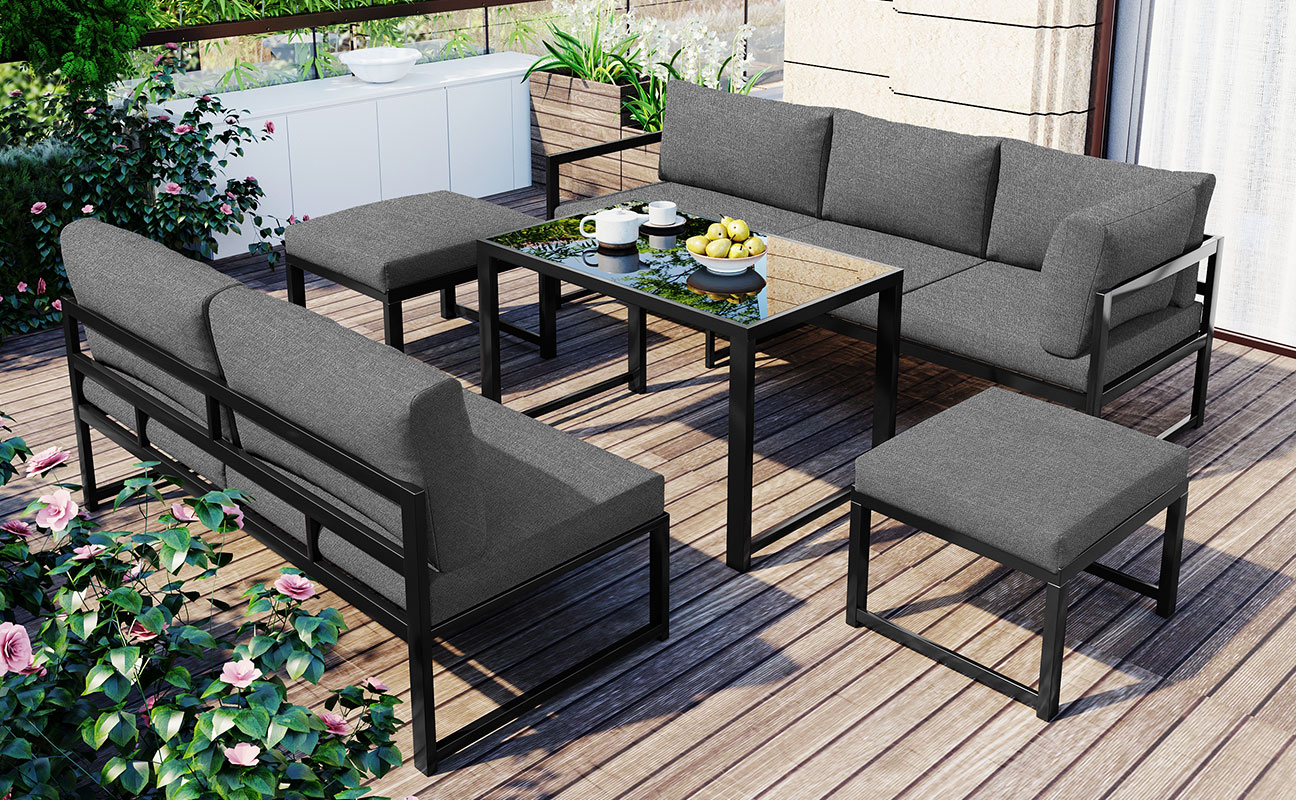 Thick cushions ensure you can relax or dine in complete comfort. The sturdy frame is attractive and durable for years of enjoyment. This set brings a modern touch to your patio or backyard while giving your outdoor space a natural feel.