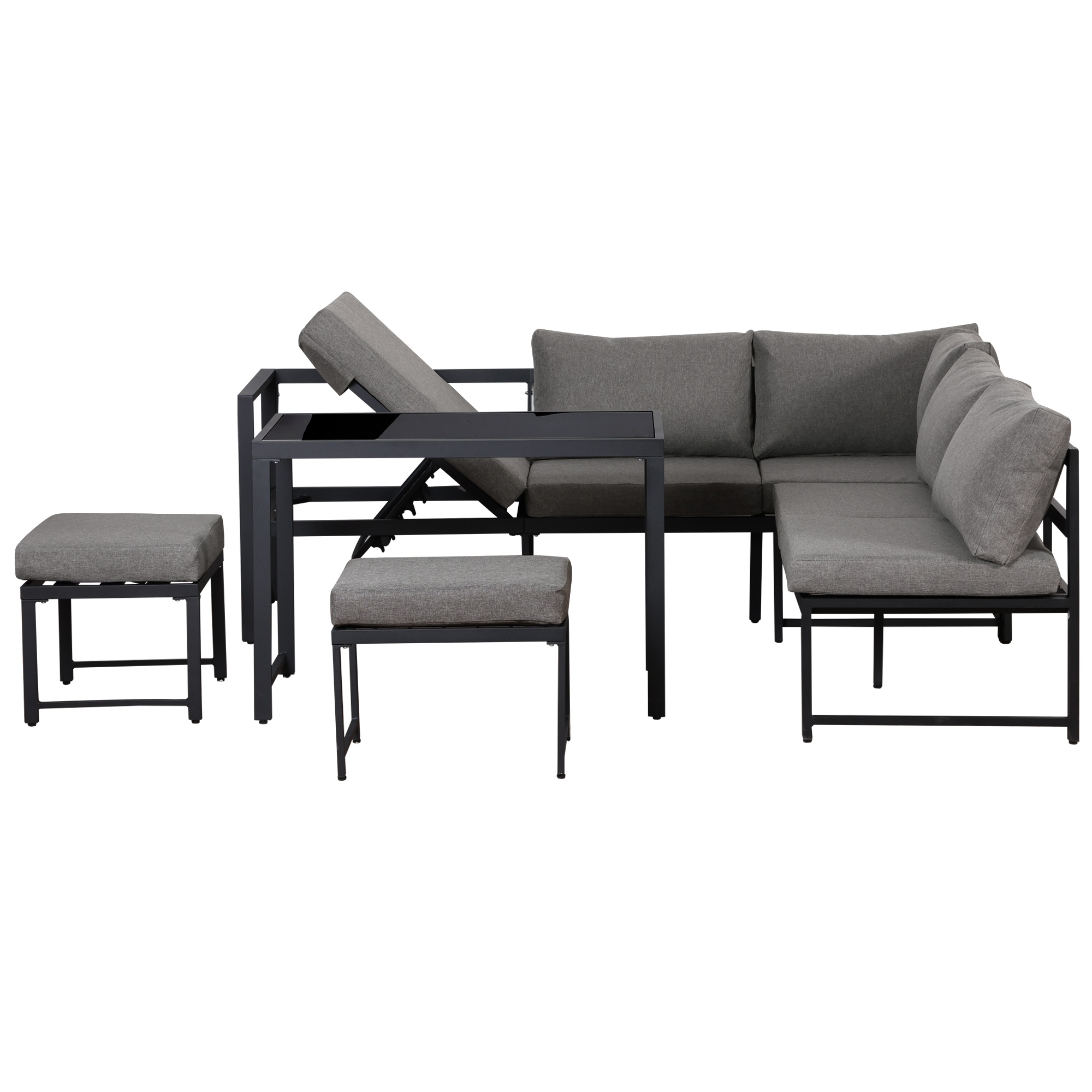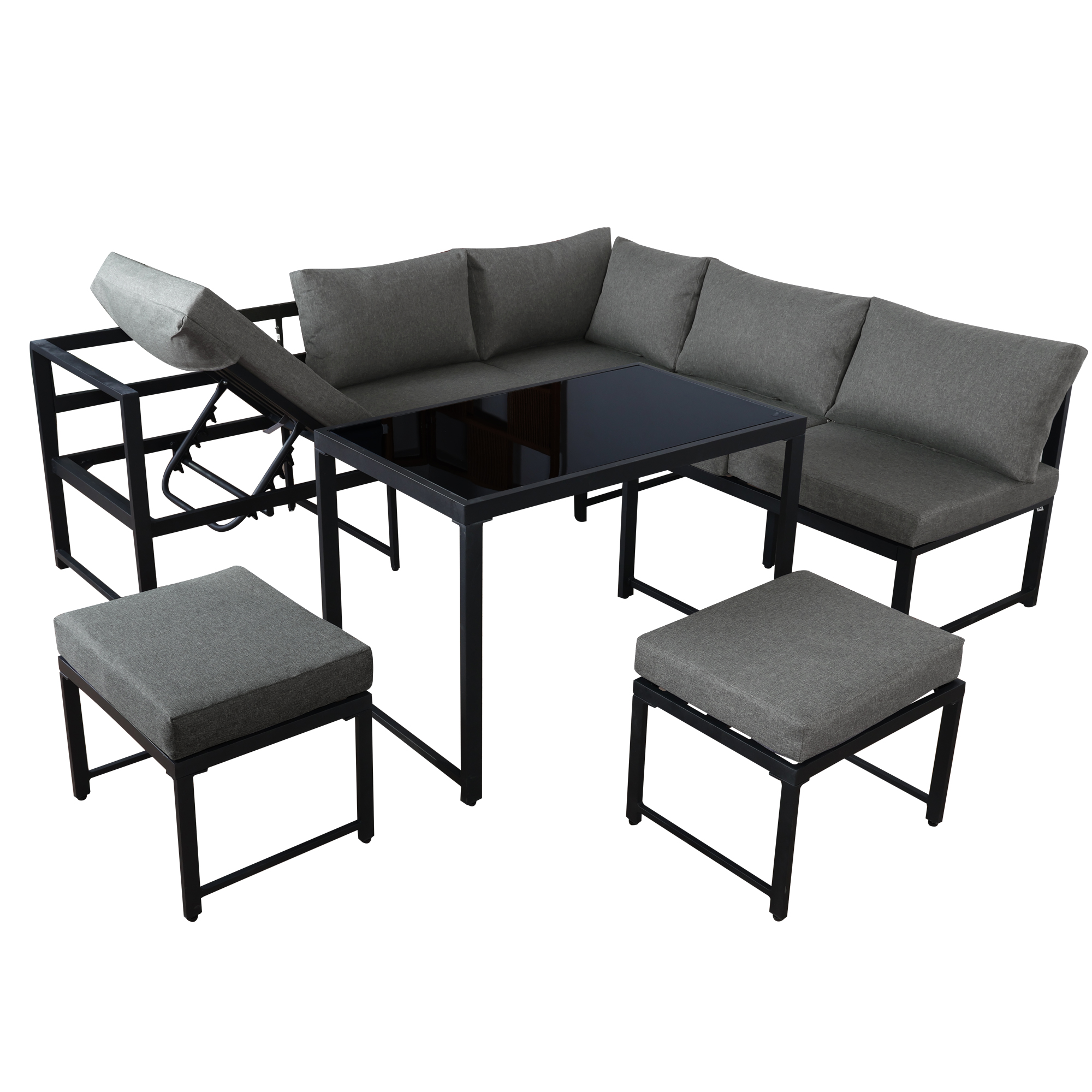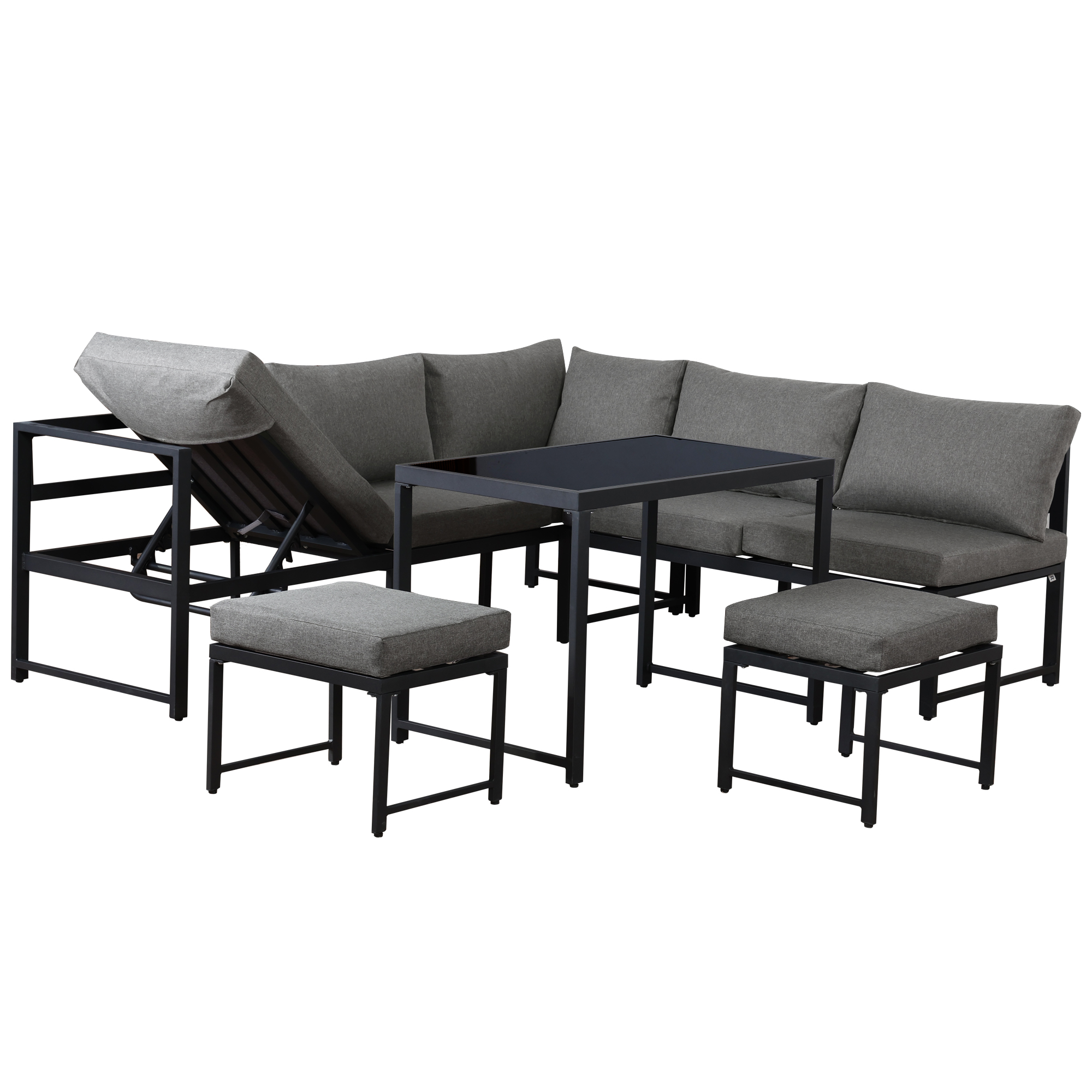 Product Name:Outdoor Garden Lounge Sofa Seating Set, Garden Balcony Furniture with Reclining Function, Backrest Adjustable in Four Directions, Includes All Soft Seat Cushions and Backrest, Grey