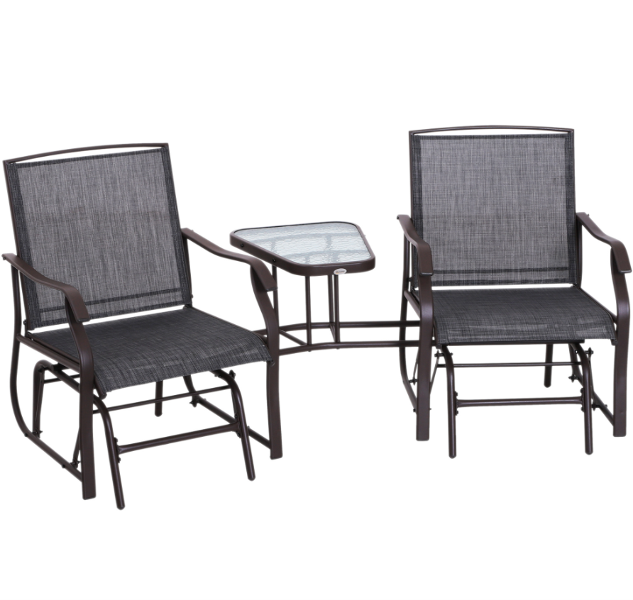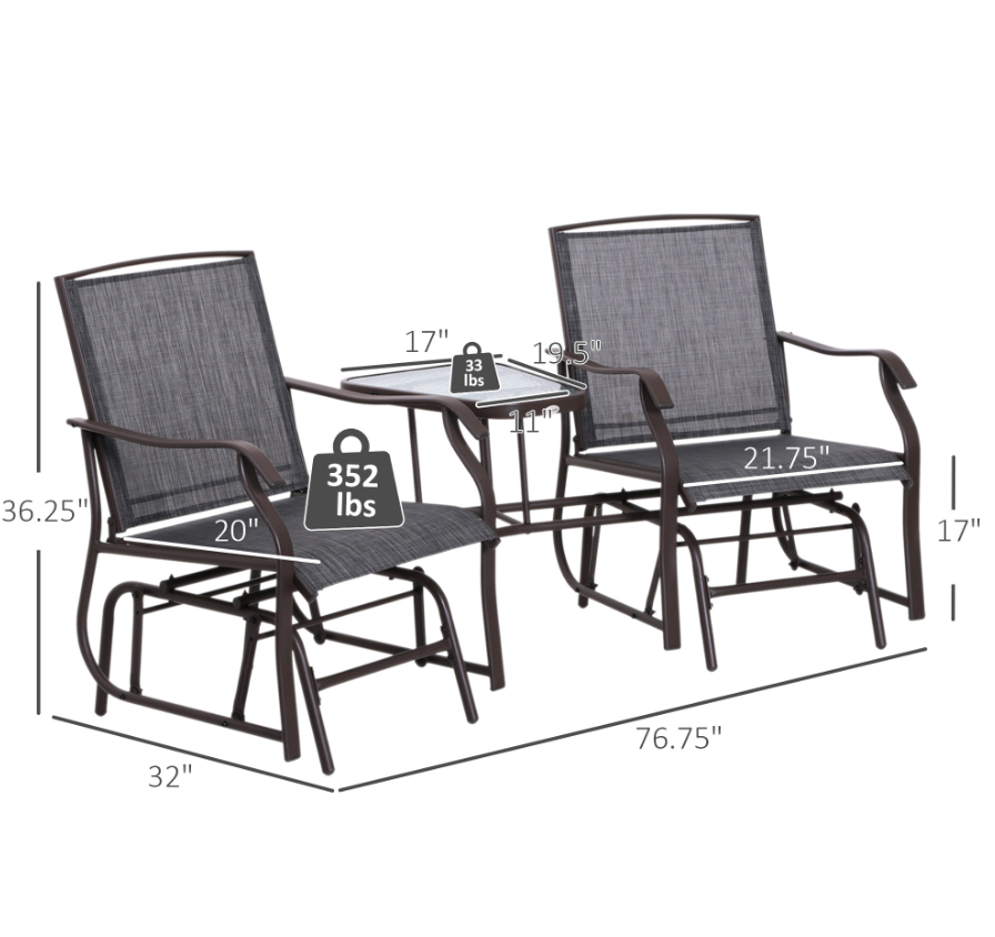 Outdoor Glider Swing 2-Seat Independent Chairs Grey With Center Coffee Table