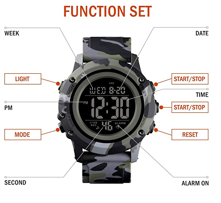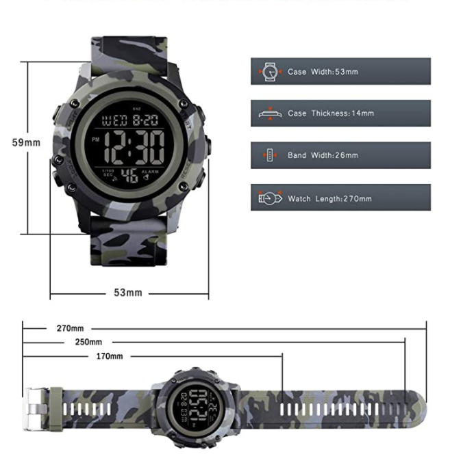 Material: ABS case, PU strap, highly transparent resin mirror, stainless steel bottom cover, stainless steel buckle