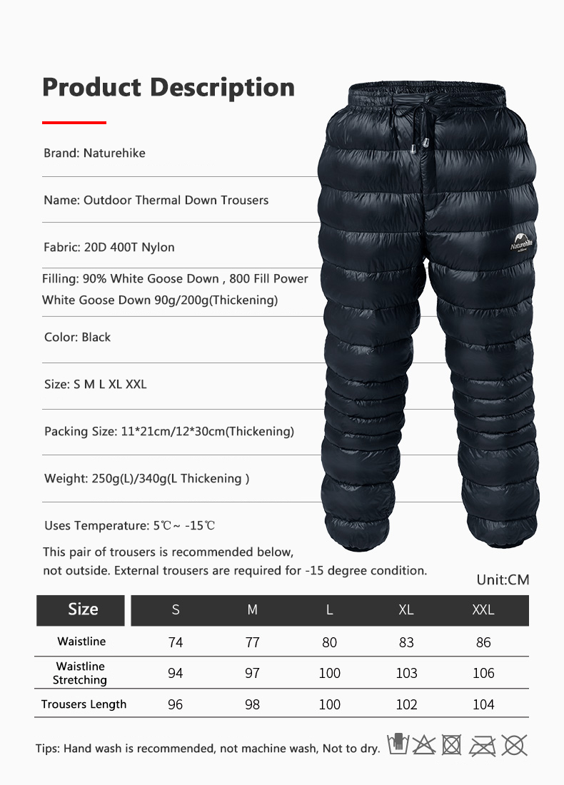 Material: NylonFilling: white goose downLining material: nylonAdaptation projects: camping, ice climbing, skiing
