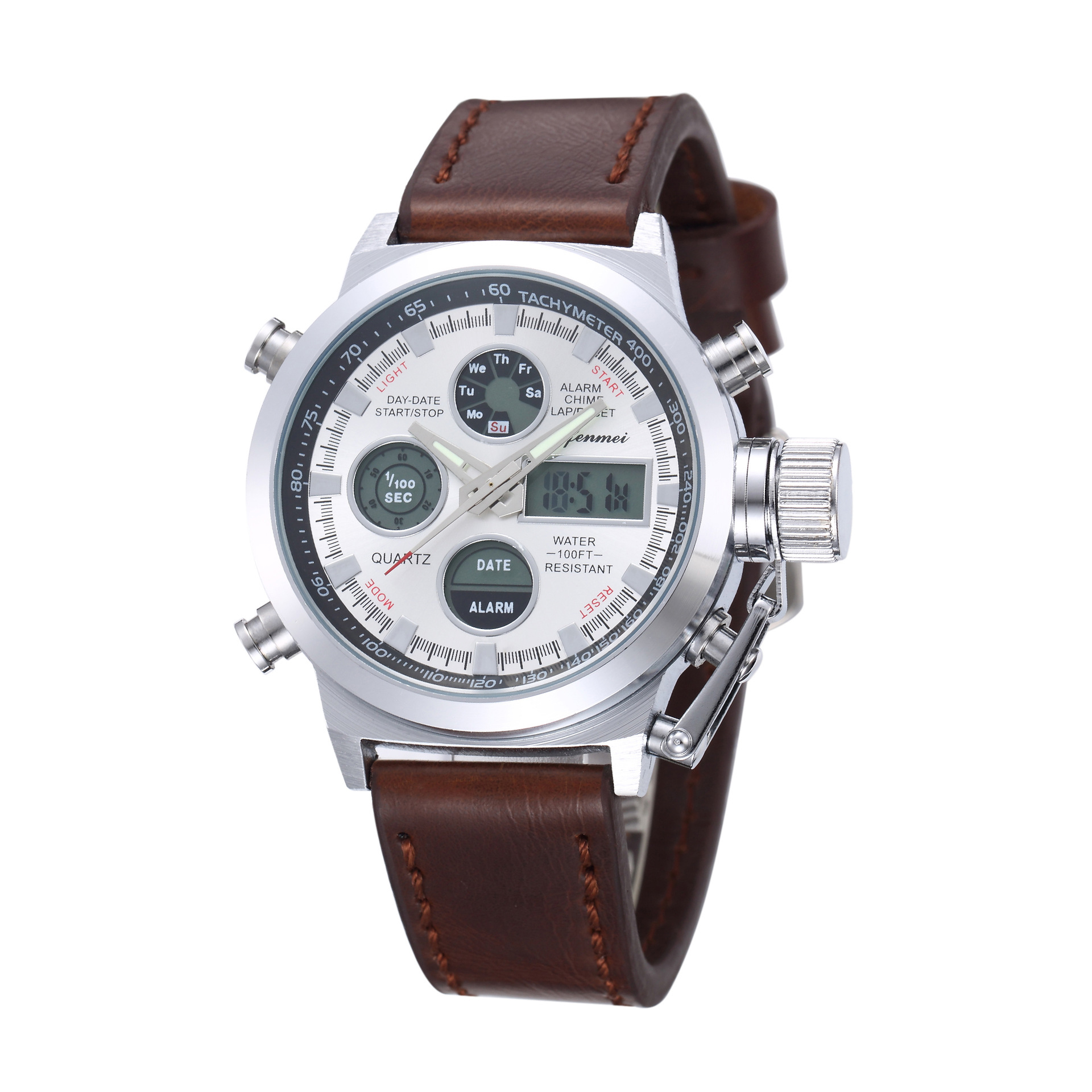 Metal case. Glass mirror. Quartz movement