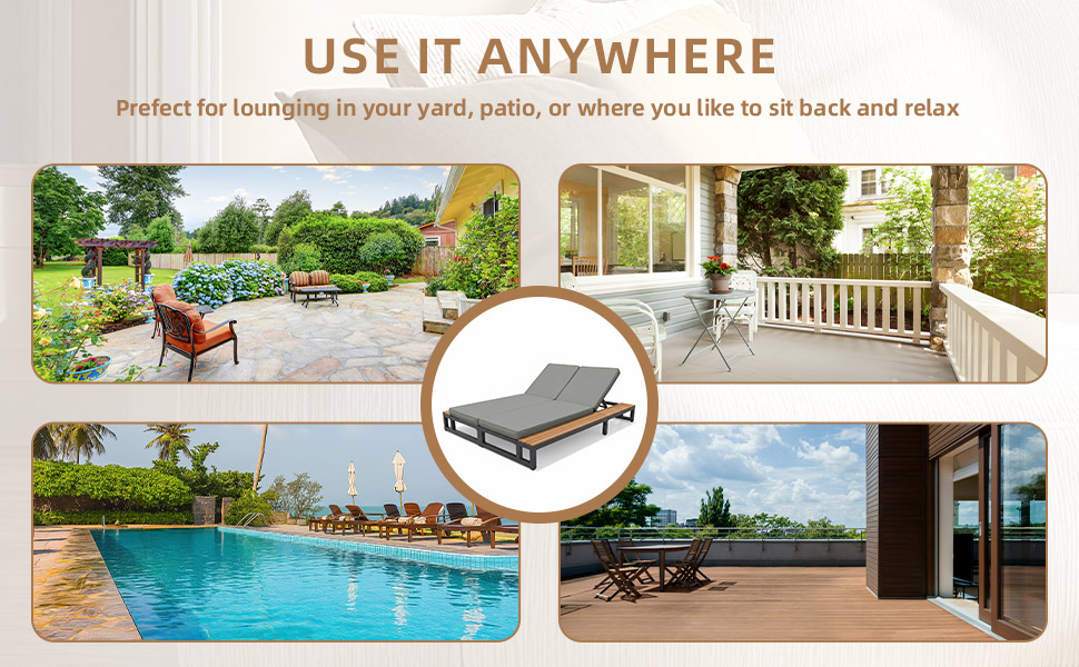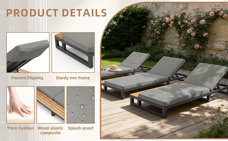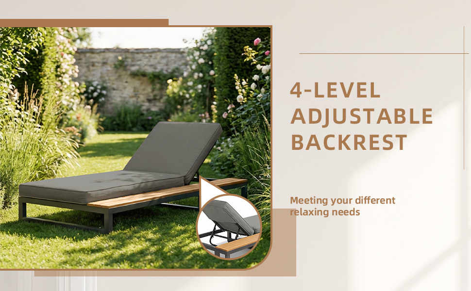 The rust-resistant, multi-coated steel frame is UV and rainproof, and will not fade or corrode. The moisture-resistant WPC composite panel is durable, environmentally friendly, and withstands various climatic conditions. This outdoor lounger retains its shape and appearance even after years of use, making it a long-lasting outdoor solution.