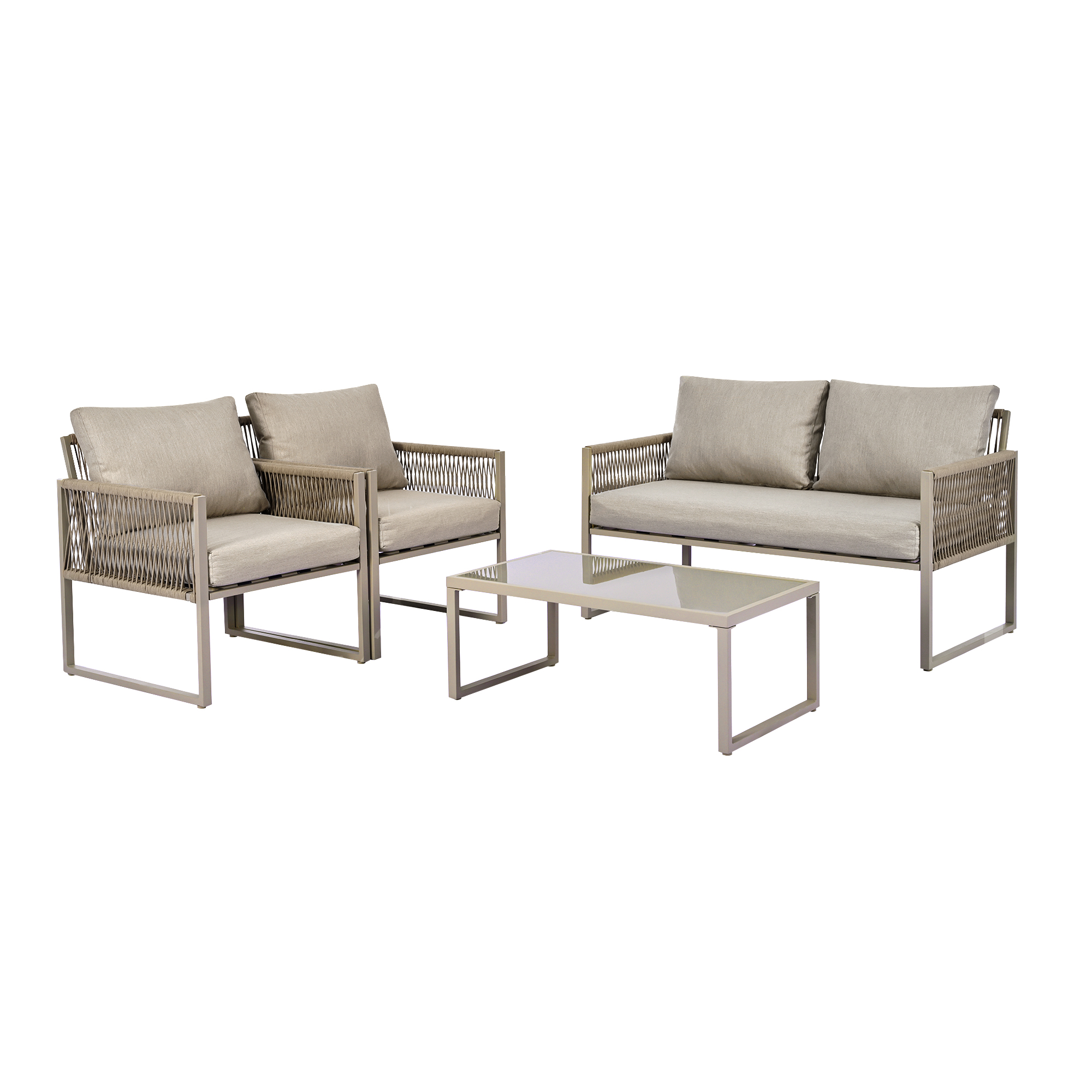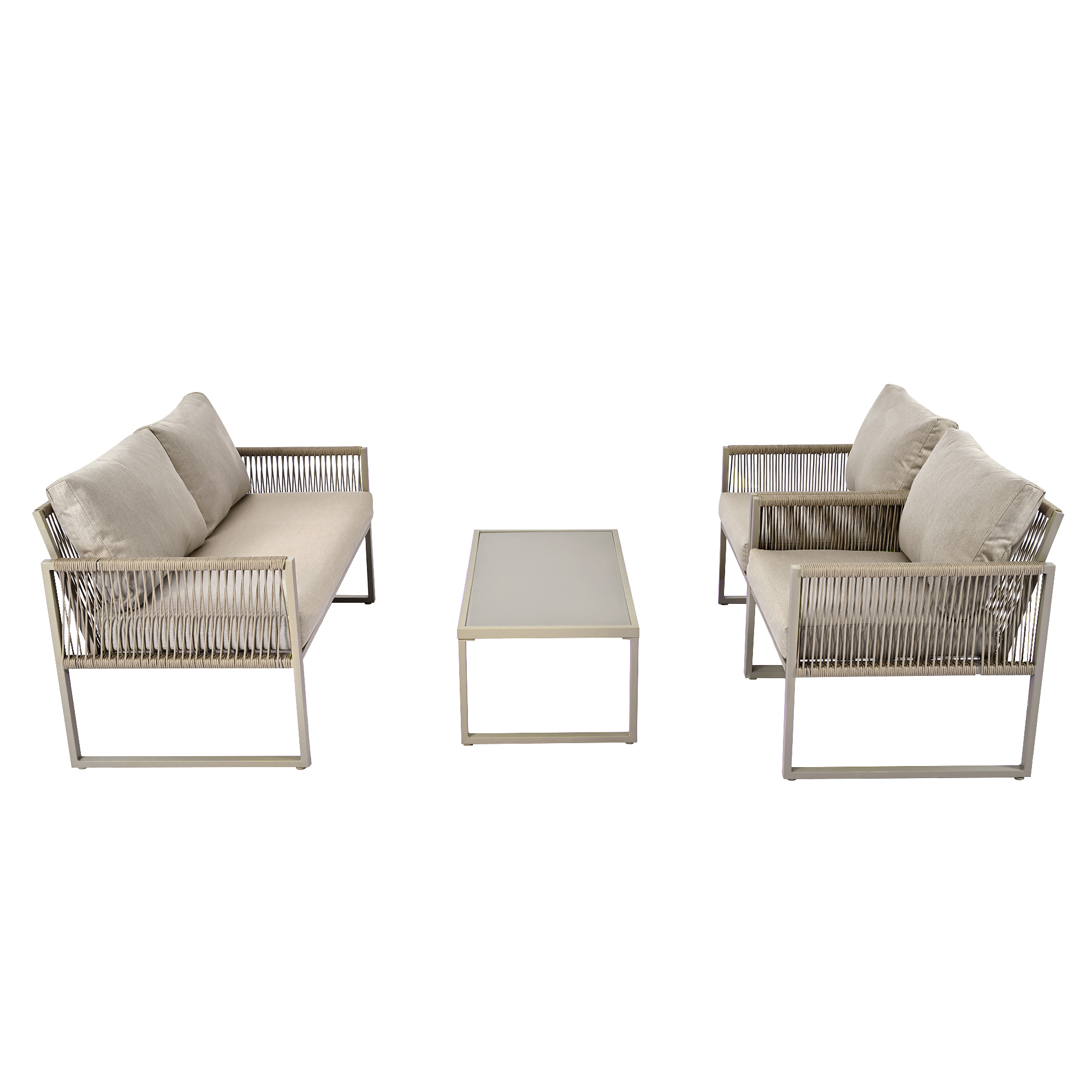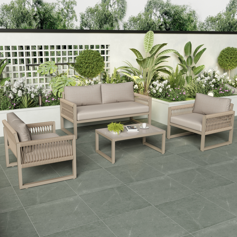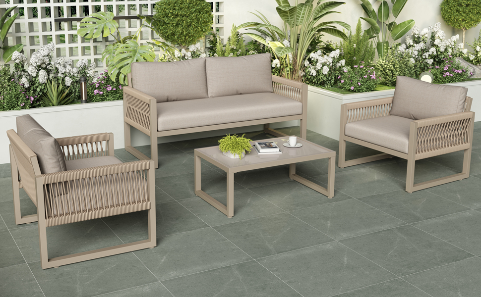Product Name:Outdoor Patio&Backyard Furniture Garden Lounge Set for 4 people, Thick Quality Space Saving Sofa with Glass Coffee Table, Khaki