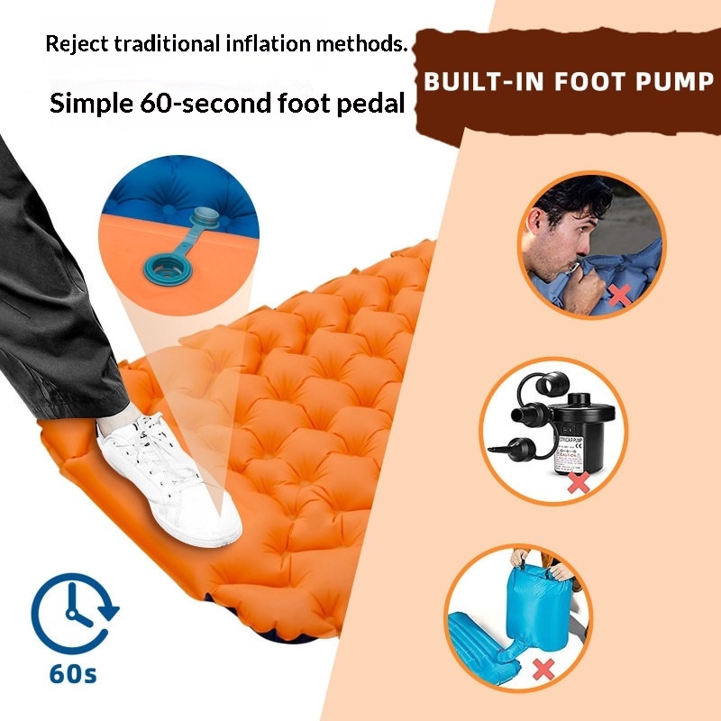 Outdoor Portable Foldable Foot-Pump Car-Carrying Inflatable Camping Mat