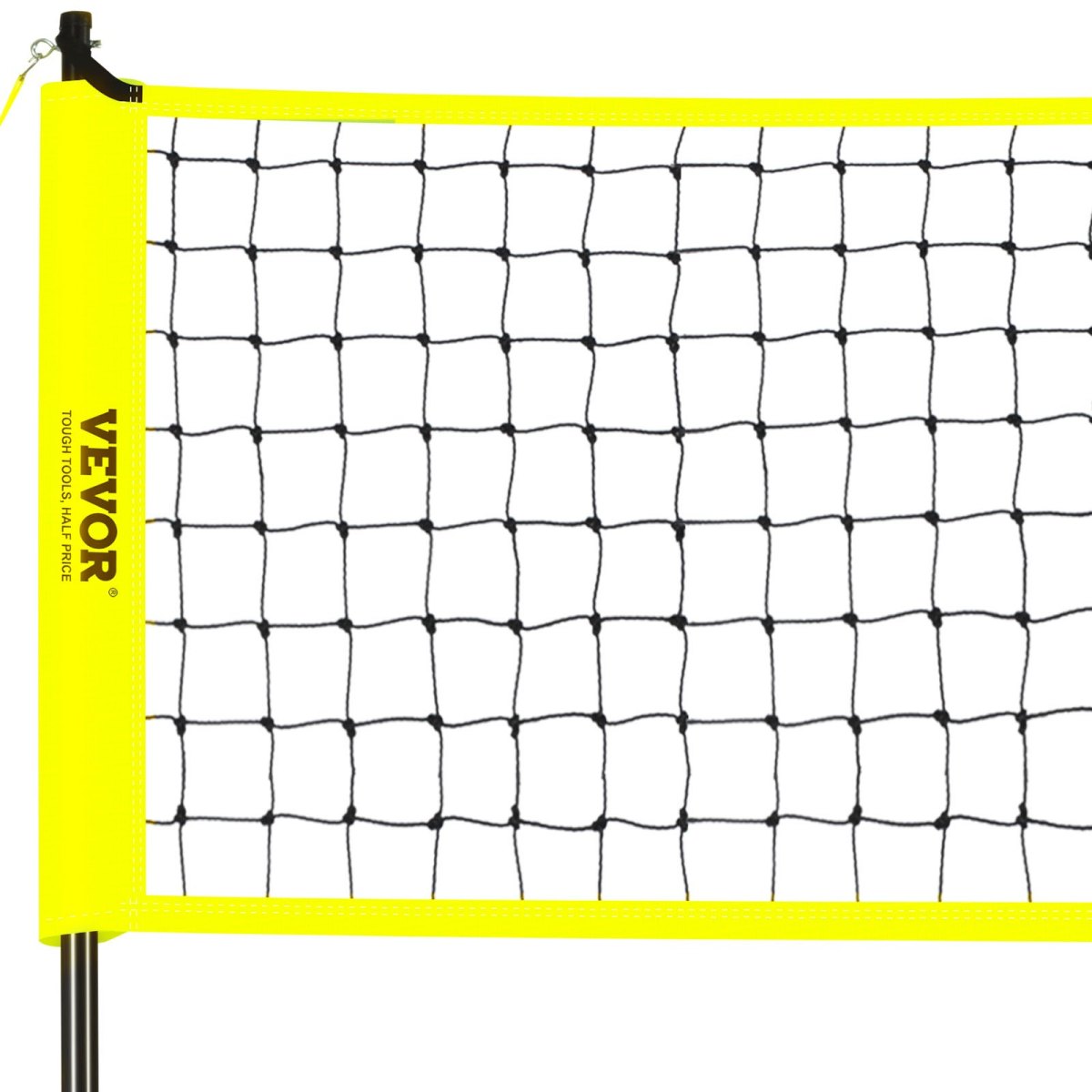 Features & Details Adjustable Height for Official Play: This outdoor volleyball net comes with an adjustable height feature, catering to various official game standards. Set it at 7.4 feet for official women's matches, 7.8 feet for official coed games, and 8 feet for official men's tournaments. Standard Volleyball Net (32'L x 3'H): The outdoor volleyball net is made from sturdy 21-layer PE material, featuring 1.5-inch top and bottom tapes and a wider 4-inch side sleeve design for stability and longevity. Moreover, the net is crafted from waterproof fabric, making it suitable for outdoor use and able to withstand the high impact of forceful strikes during intense volleyball games. 1.25-Inch Thick Steel Poles: The heavy-duty volleyball net includes thickened poles that offer enhanced stability, particularly when used outdoors. These poles are designed to withstand various weather conditions, ensuring your game remains steady and secure. Quick & Easy Assembly: Setting up this volleyball net for backyard is a breeze thanks to its interlocking design. No tools are required, so you can have it ready for play in no time. Additionally, the set includes a convenient carrying bag, making it highly portable. Whether you're at the park with friends, in your backyard with family, or at a designated volleyball court, this outdoor portable volleyball net system allows you to enjoy the sport wherever you like. Abundant Accessories: The heavy-duty volleyball net set includes 1 standard 32x3 feet volleyball net, 6 powder-coated steel poles, 1 PU volleyball, 1 ball pump with 2 needles, 4 guy ropes with 4 8-inch long metal stakes, 1 boundary equipped with 4 metal stakes, 1 user manual, and 1 portable 600D carry bag.