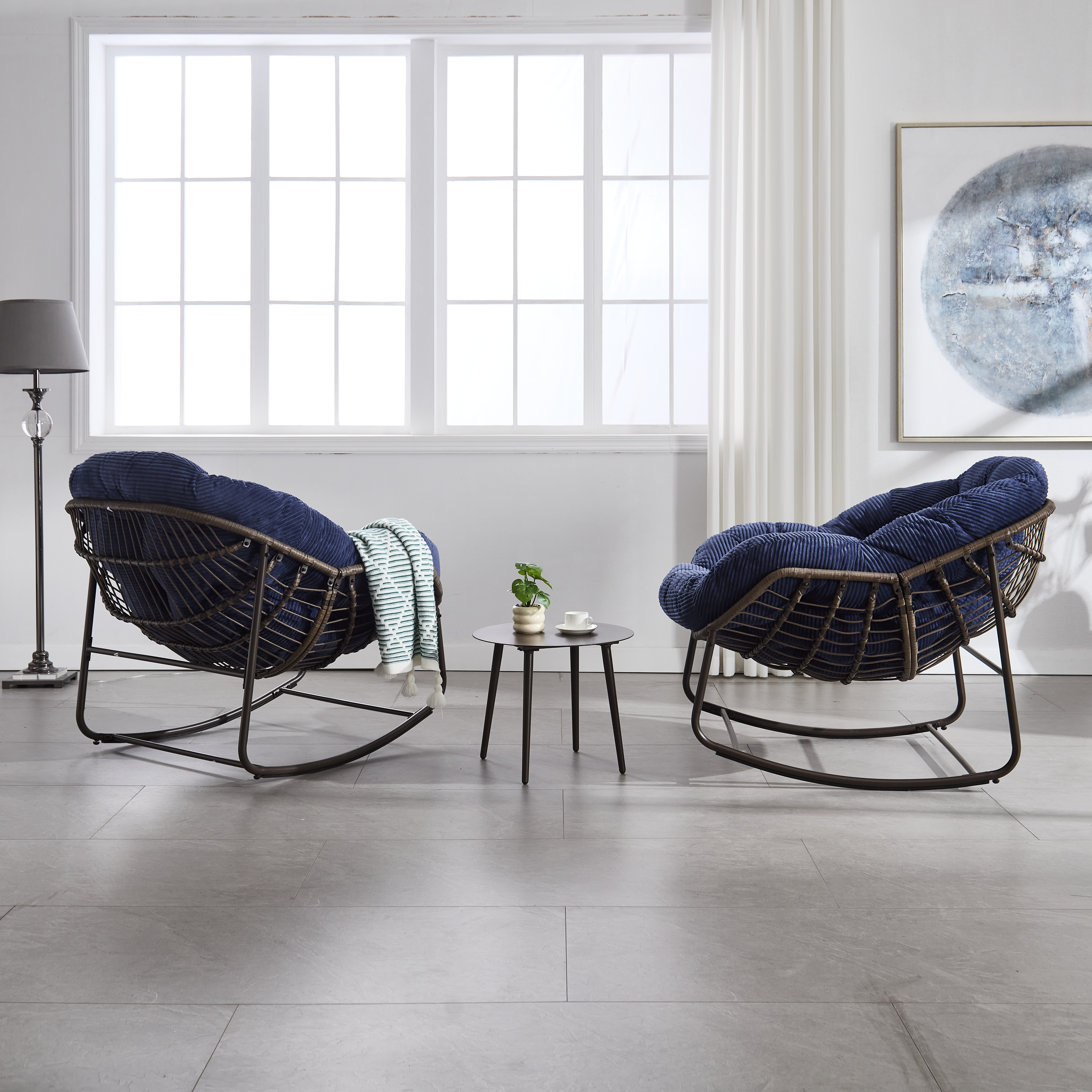 Product Name:Outdoor Rattan Rocking Chair,Padded Cushion Rocker Recliner Chair Outdoor for Front Porch, Living Room, Patio, Garden, Navy blue
