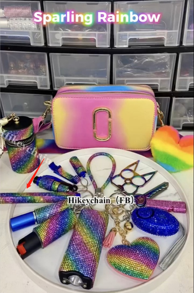 Red, purple, black, gold, blue, white, pink, sky blue, green