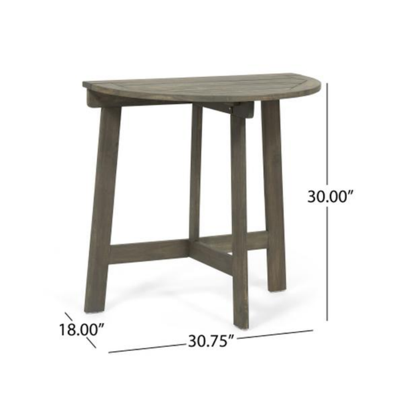 HALF-ROUND SHAPE: This fits snuggly against a wall or window sill with its half-round shape, making this table perfect for patios and small spaces.This is finished with beautifully slatted paneling, giving this set a sophisticated, classic look.