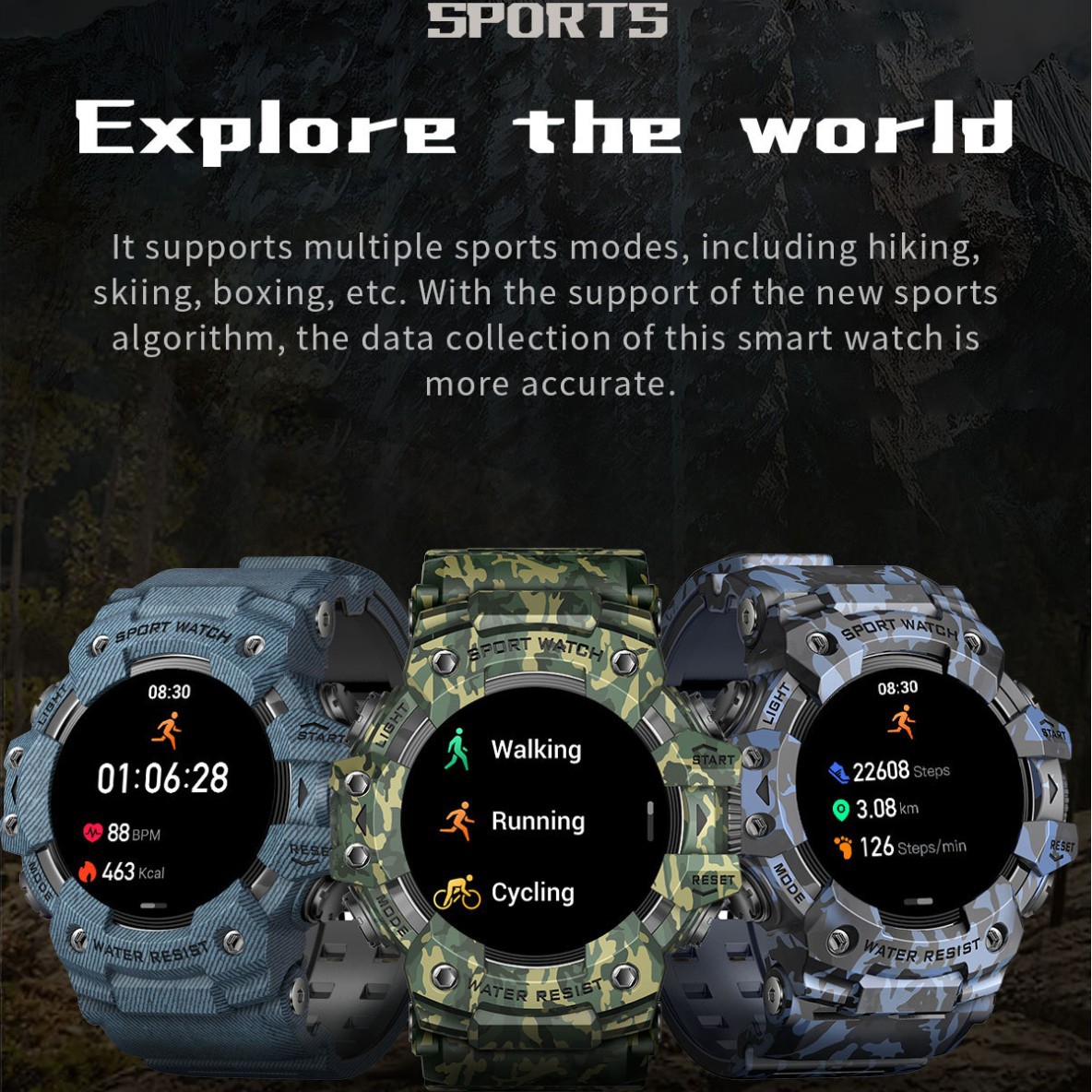Functions: Waterproof, step counting, heart rate monitoring, blood pressure measurement, social entertainment, smart reminder, remote control selfie, sleep monitoring, blood oxygen detection