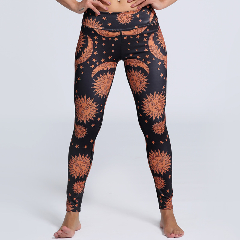 AliExpress hot sale outdoor sports digital printing stars and moon slim yoga leggings