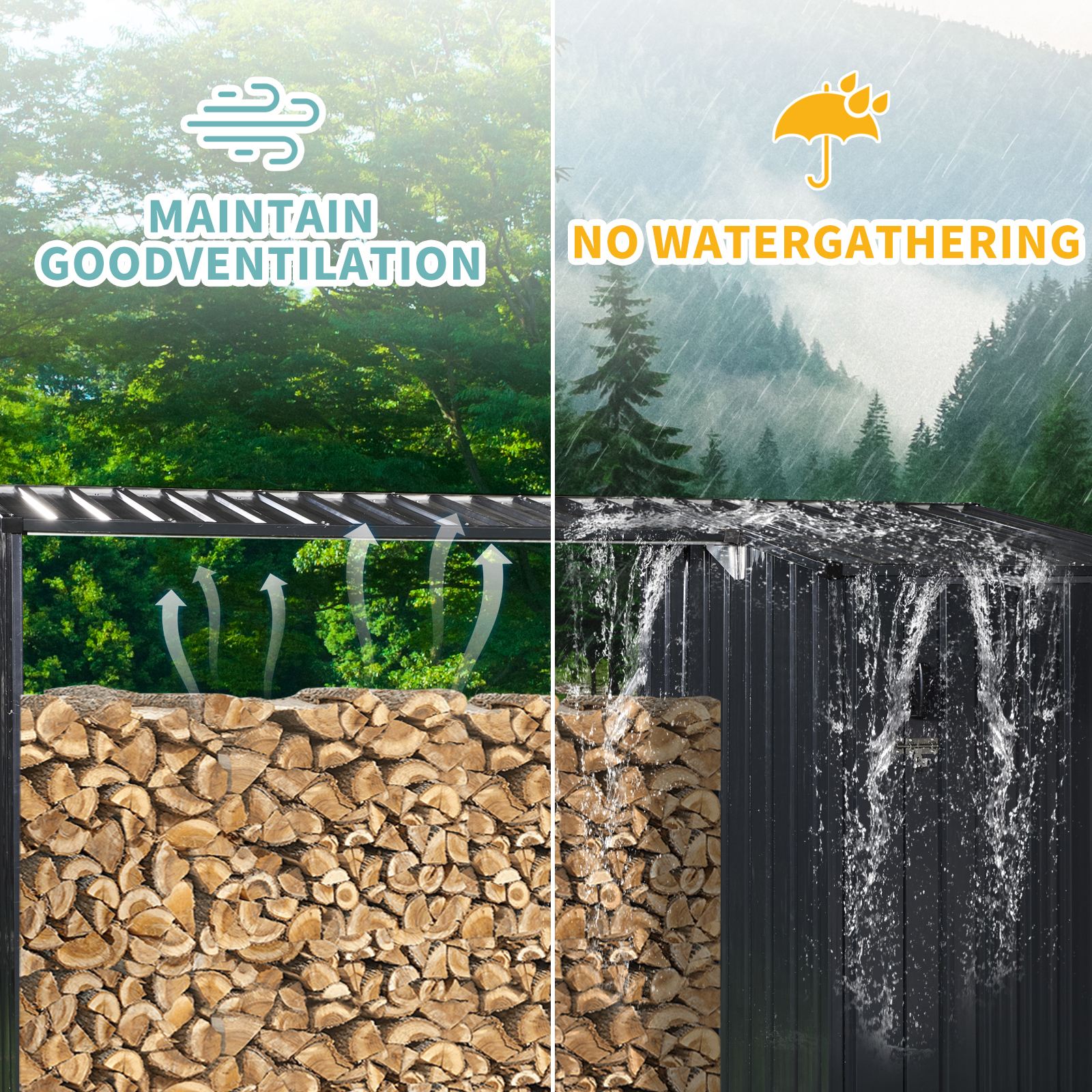 Product Name:Outdoor Steel Firewood Rack and Metal Storage Shed,Two-In-One,Black (W540P171889) updated version