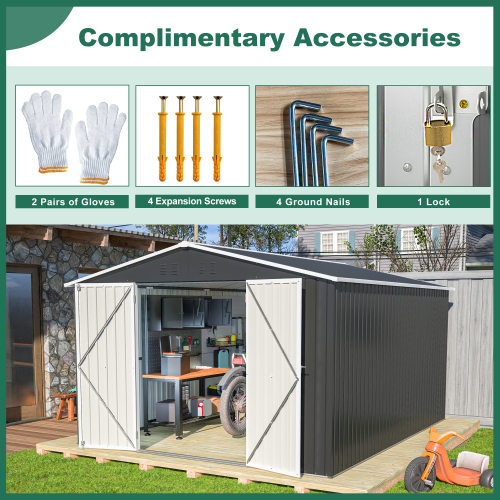 Product Name:Outdoor Storage Shed 10x12 FT, Utility Metal Tool Storage with Lockable Doors and Updated Frame Structure, Large Metal Garden Shed for Backyard, Patio Lawn, Black
