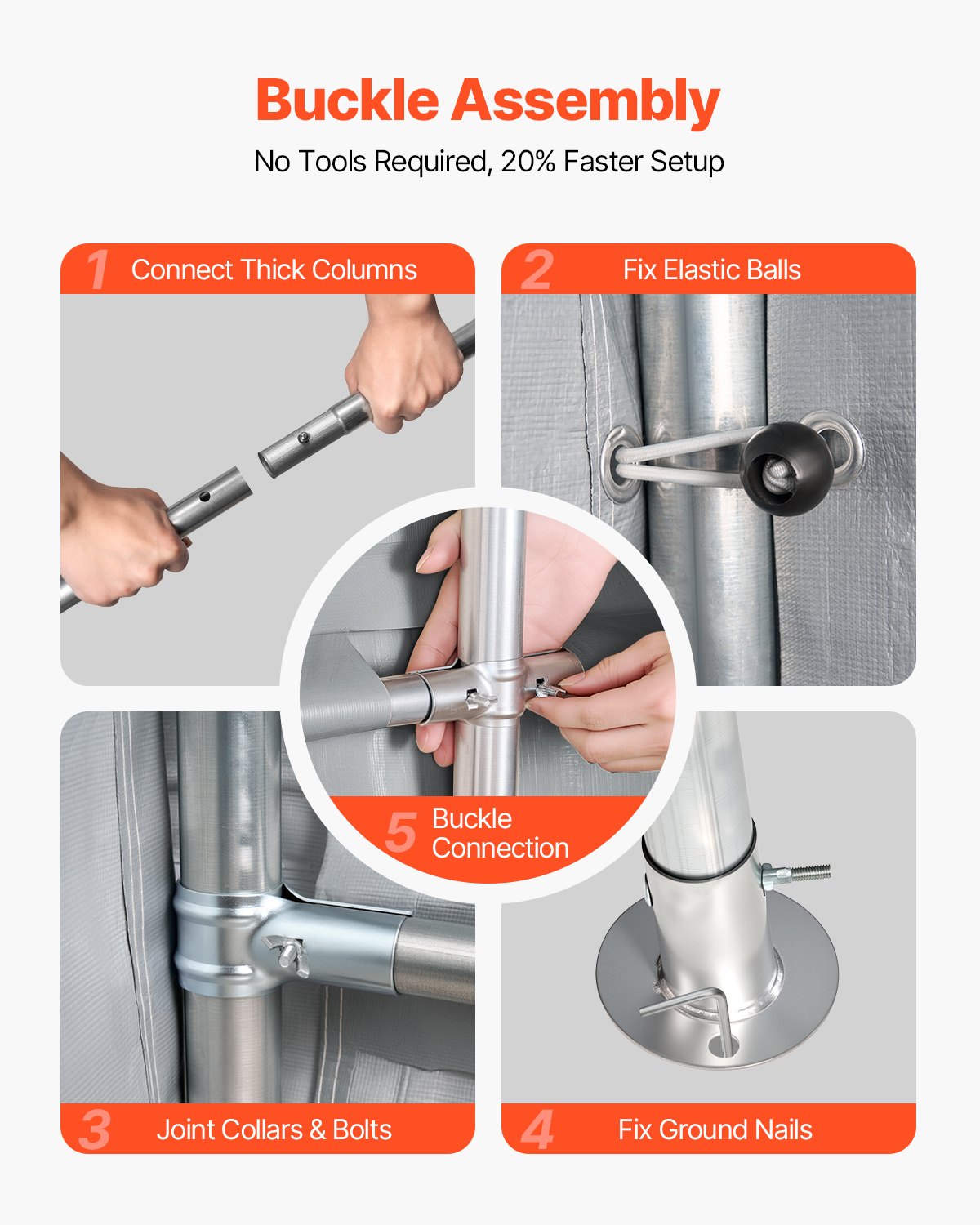 Heavy-Duty Metal Frame: This large 10x10 ft portable storage shed is built with galvanized steel pipes, with a pipe diameter of 38mm and wall thickness up to 0.7mm. This makes it resistant to cracking, peeling, rusting, and corrosion, ensuring stability and security even in harsh weather conditions.