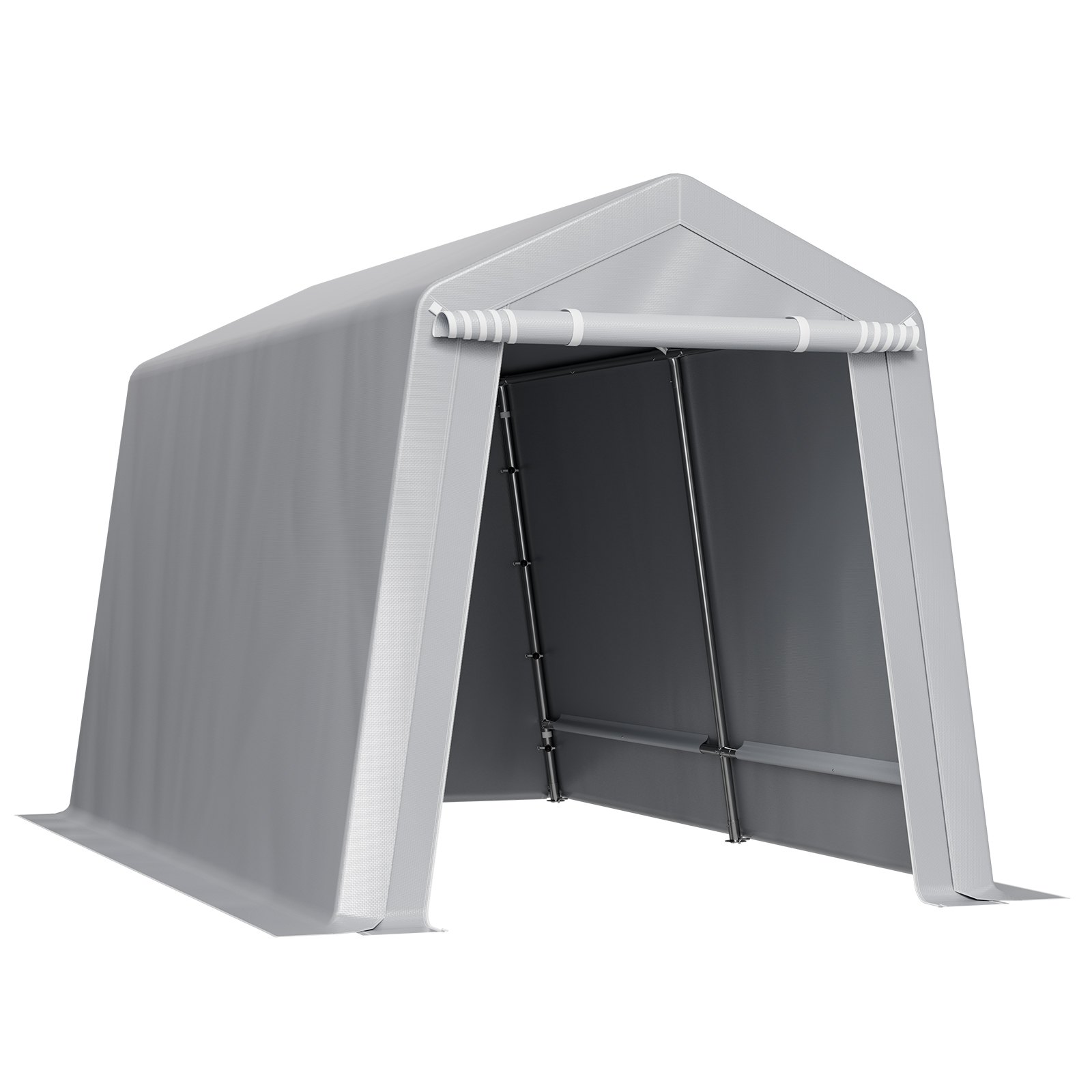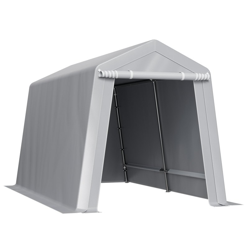 PE Double-Sided Coated Canopy: The outdoor storage shelter comes with a gray cover that is made from double-layer coated PE material, offering tear resistance, fade resistance, rain and snow protection, wind and dust resistance, and UV protection. The bottom extends 5.91 inches (15 cm) to the ground, improving stability and protecting your equipment from harsh weather.