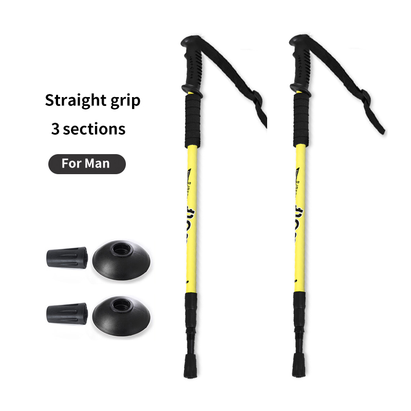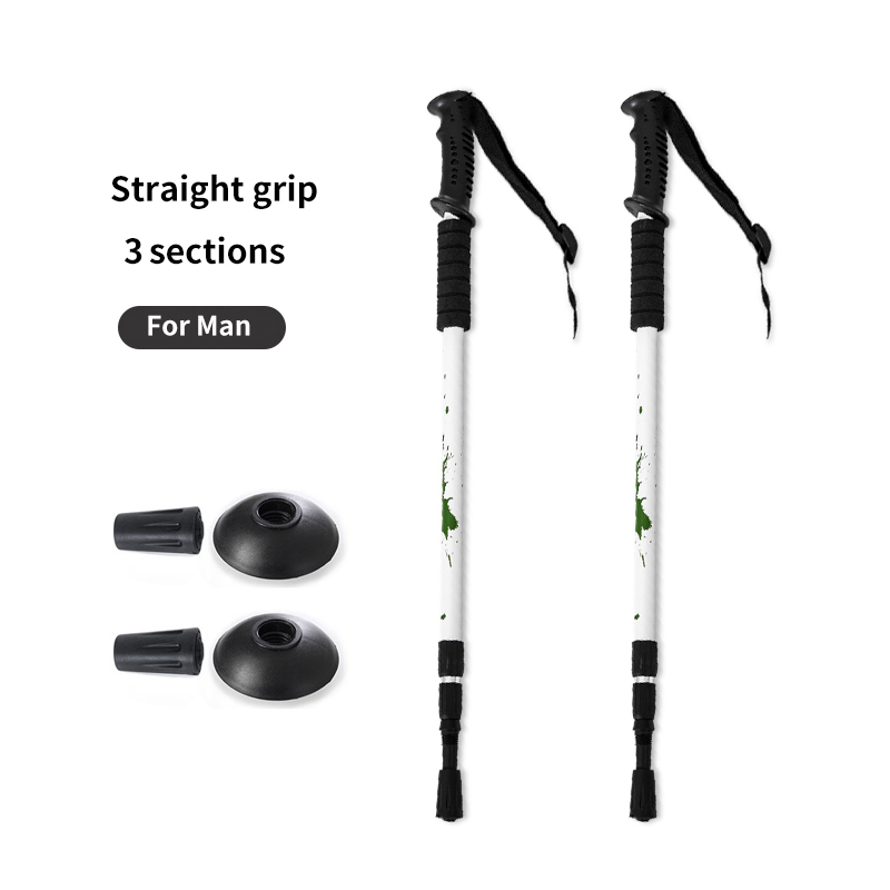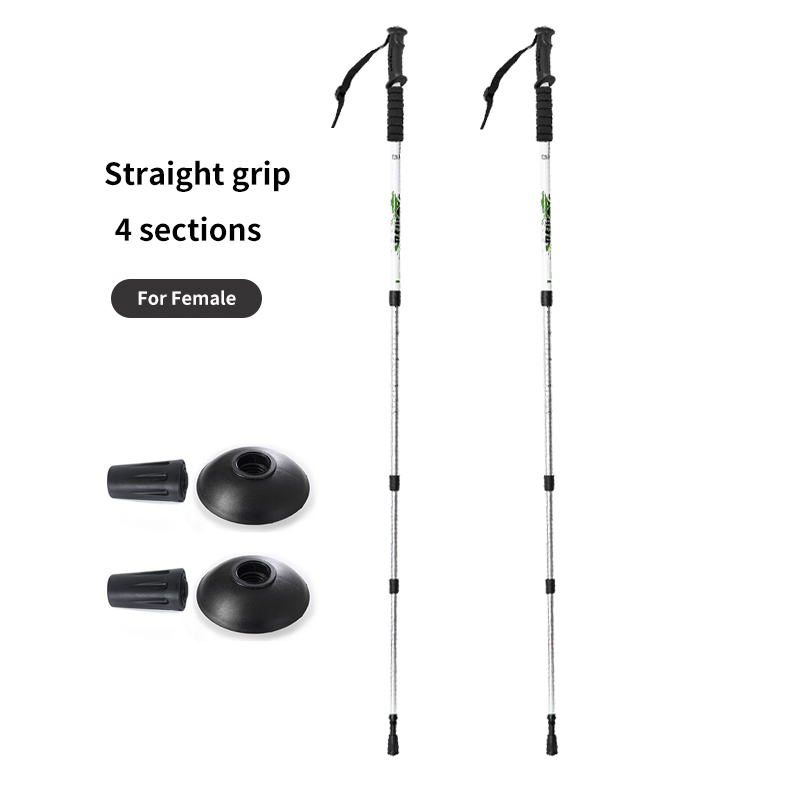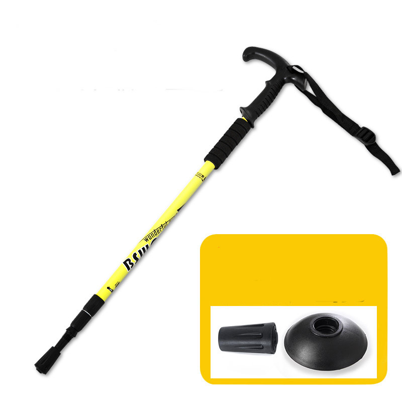 Outdoor Ultra-light Folding Trekking Pole Aluminum Alloy Telescopic Straight Handle