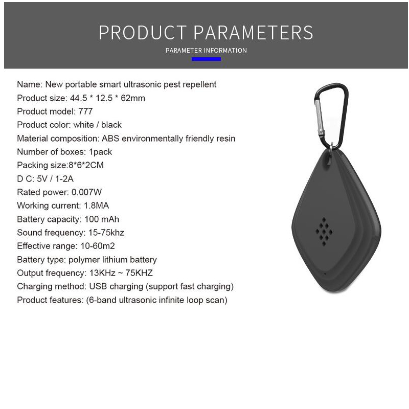 Portable electronic insect repellent This device is based on physical principles and uses electronic simulation technology to achieve the effect of repelling mosquitoes and insects. By emitting various sound waves that can stimulate the mosquito's brain, because the mosquitoes cannot tolerate those sound waves, they stay away.