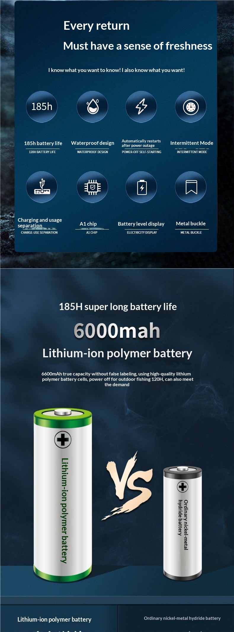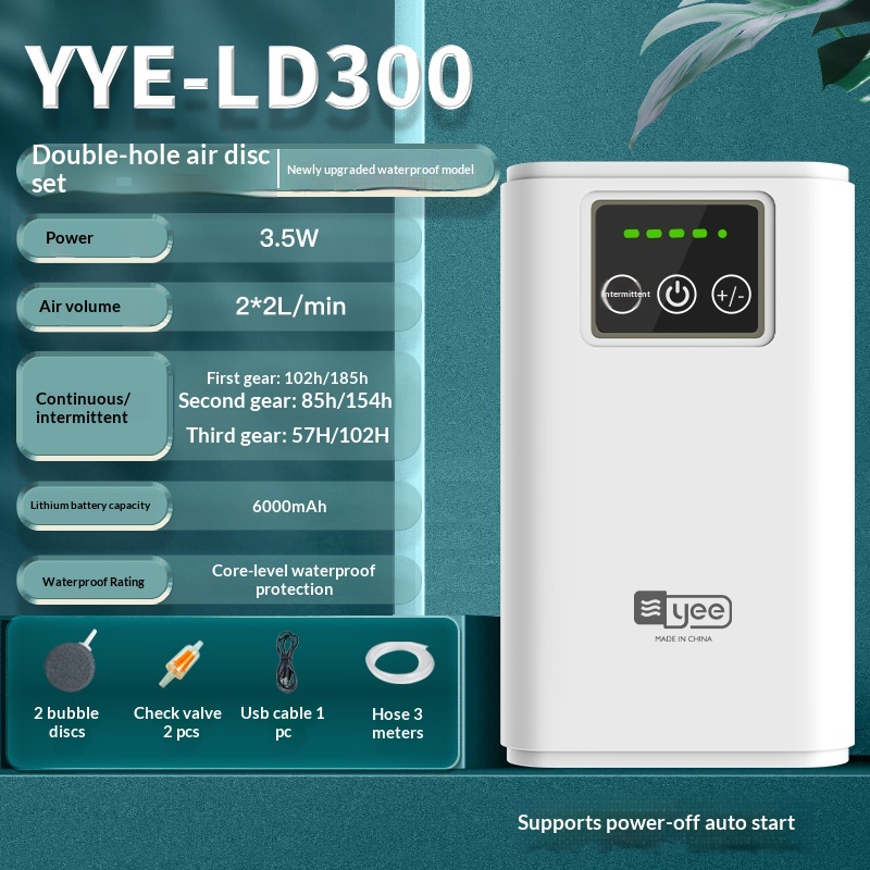 Specifications: Continuous operation for 102 hours / Dual-hole air stone kit [with built-in core waterproof technology, battery life up to 185 hours]; Continuous operation for 102 hours / Dual-hole air disk kit [with built-in core waterproof technology, battery life up to 185 hours]; Continuous operation for 102 hours / Dual-hole air disk kit [with built-in core waterproof technology, battery life up to 185 hours]; Continuous operation for 102 hours / Dual-hole air disk kit [with built-in core waterproof technology, battery life up to 185 hours]; Intermittent use duration of 40 hours / Dual-hole air stone kit; Intermittent use duration of 40 hours / Dual-hole air disk kit