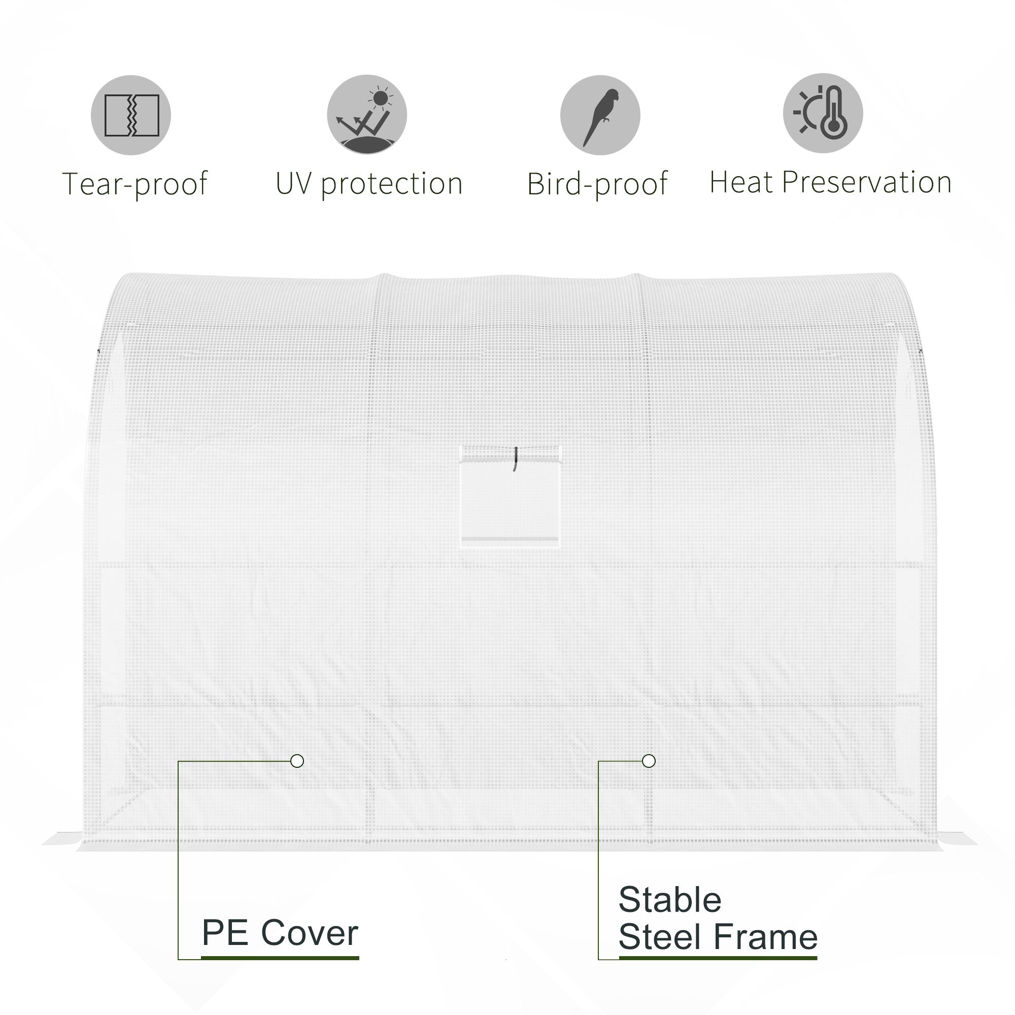 This walk-in garden greenhouse is suitable for home gardening. The plant nursery offers all the protection your plants need to thrive. Includes a frame and PE cover that will keep your plants and vegetables safe from the elements. The windows have interior netting to provide ventilation throughout the plant nursery. Our greenhouse will keep your plants happy and healthy throughout the year.