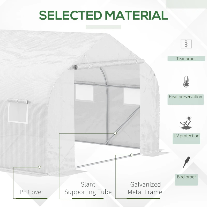 Outdoor Walk-in Greenhouse, Tunnel Green House With Roll-up Windows, Zippered Door, PE Cover, Heavy Duty Steel Frame, White