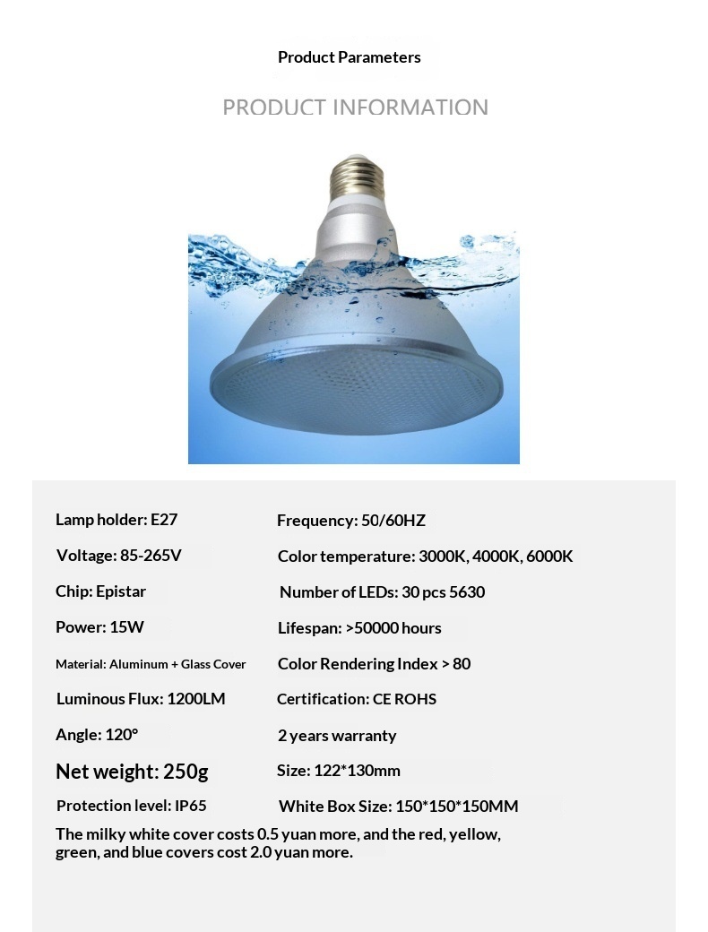Light color: Warm white 3000K, natural white 4000K, cool white 6000K
