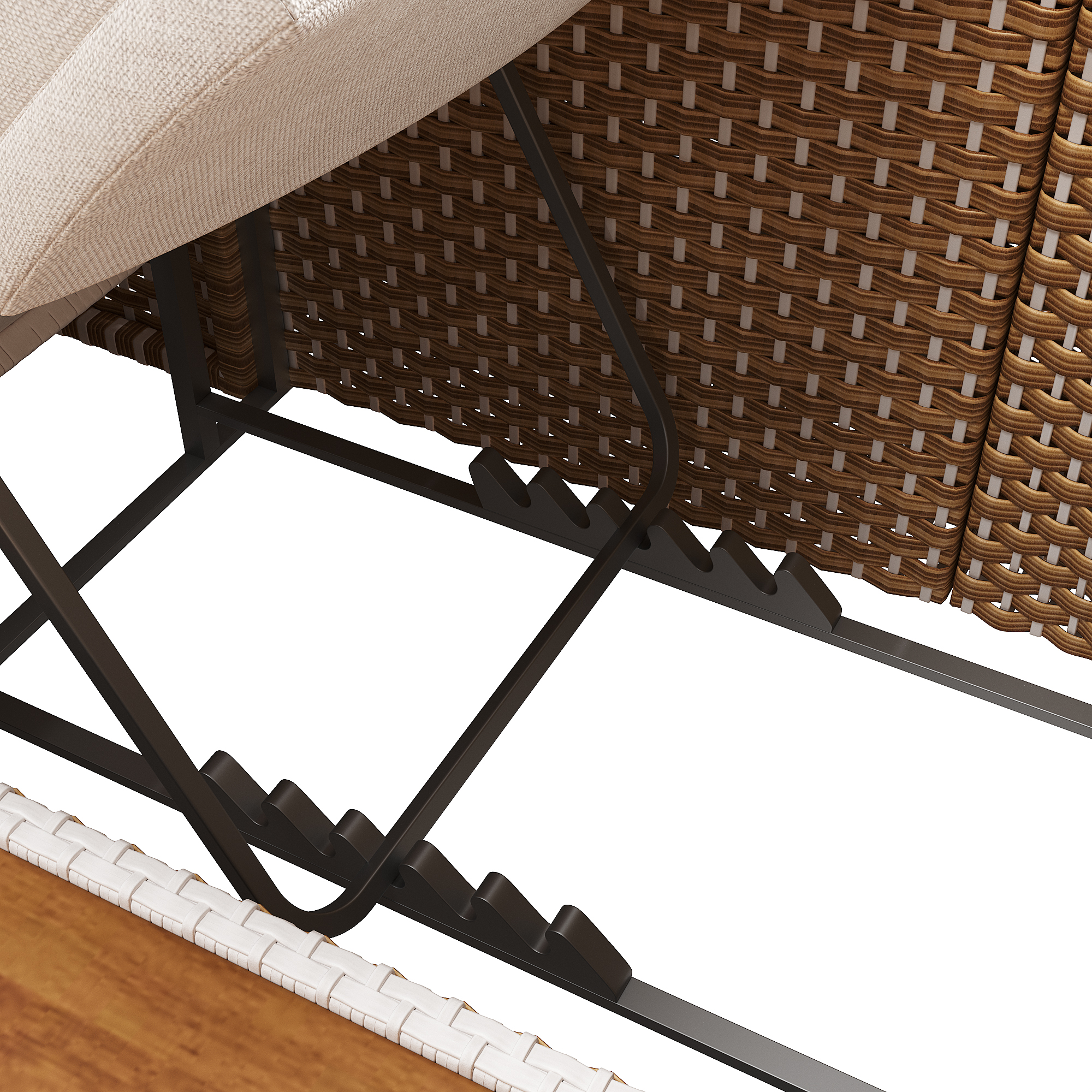 This outdoor wicker double chaise lounge is designed for ultimate relaxation, featuring 5 adjustable reclining levels that let you switch between Reading Mode, Relaxing Mode, and Sleeping Mode with ease. The adjustable headrests and pull cord design add to the comfort, while the thick, high-density sponge padding in the seat cushions ensures a soft, supportive seating experience. The splash-proof cushion fabric is durable and easy to clean, making it perfect for outdoor use.