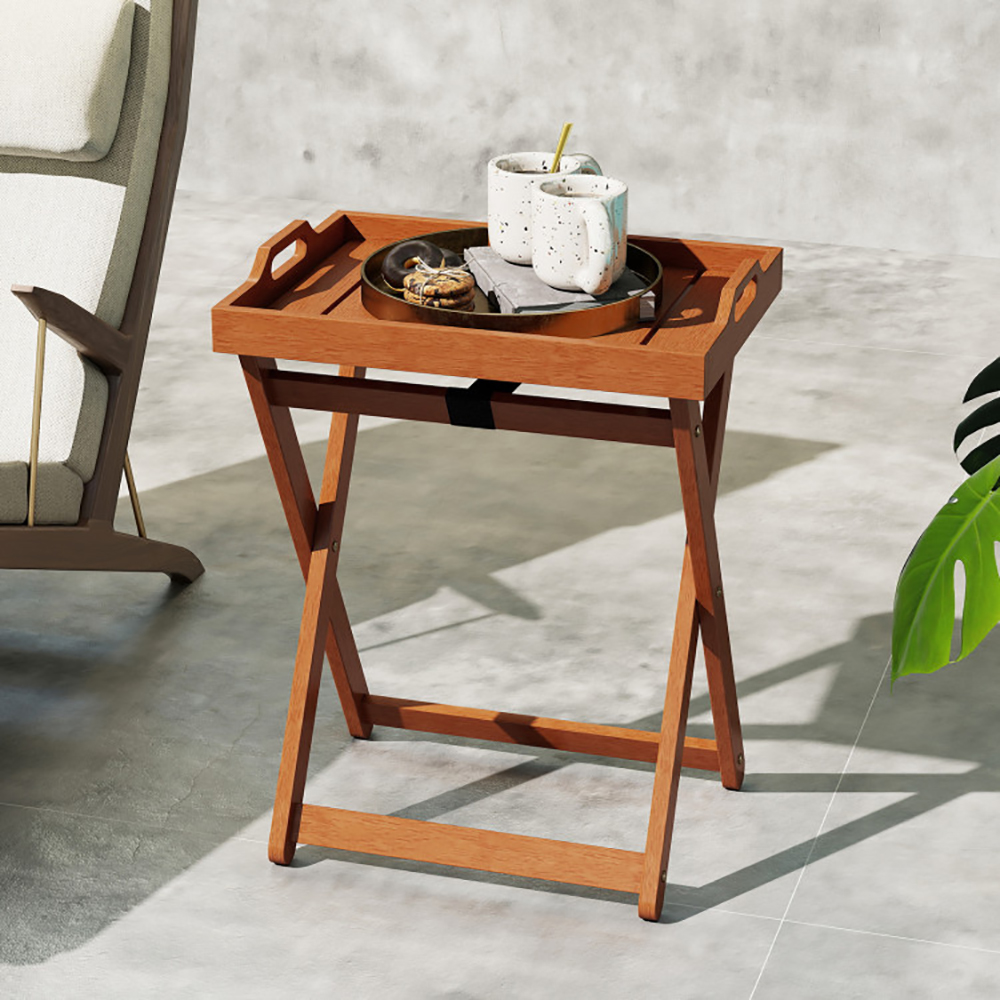 • Space-saving Folding Design: The wood frame of this outside tray table folds effortlessly, allowing for compact storage when not in use, which saves valuable space for both indoor and outdoor environments.